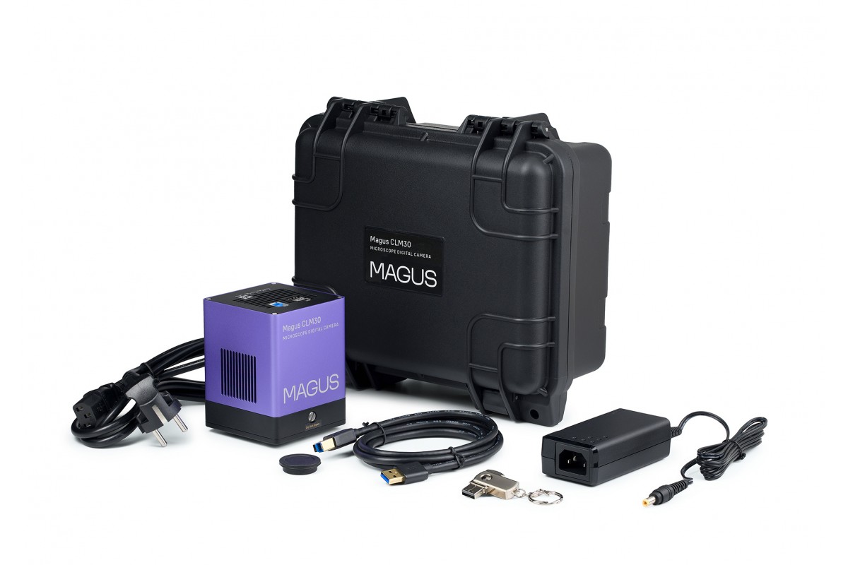 Линейка камер для микроскопа MAGUS CLM специально спроектирована для фиксации исследований, проводимых в люминесцентном свете и по методу темного поля. Модель CLM30 – это цветная камера с разрешением сенсора 8,3 Мпикс, предназначенная для совместной работы с объективами кратностью 4х, 10х, 20х и 40х. Устройство снимает в двух разрешениях: 3840x2160 пикс при 45 FPS и 1920x1080 пикс при 70 FPS. Камера оснащена специальным охлаждающим элементом и может фотографировать при длительной выдержке без нагрева матрицы и появления теплового шума. Результат – фото- и видеоматериалы без искажений, разрывов между кадрами, изображение адекватное и реалистичное даже при быстро передвигающемся объекте наблюдений. Камера подключается к компьютеру с помощью скоростного интерфейса USB 3.0 и предназначена для профессиональных исследований в условиях лабораторий, а также для образовательного процесса уровня вуза.