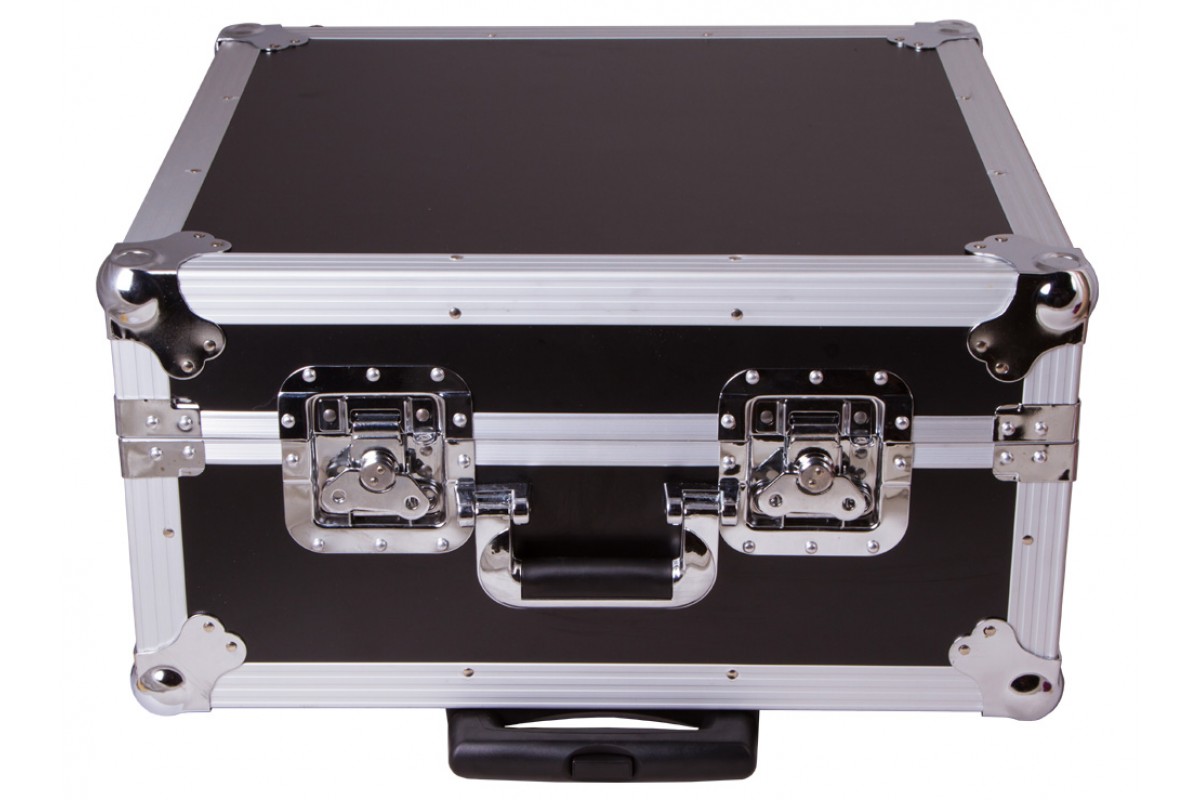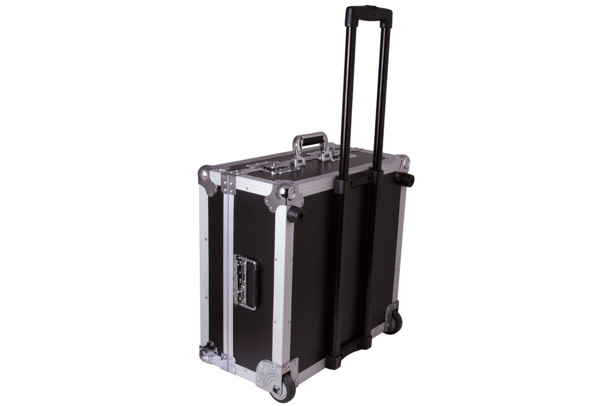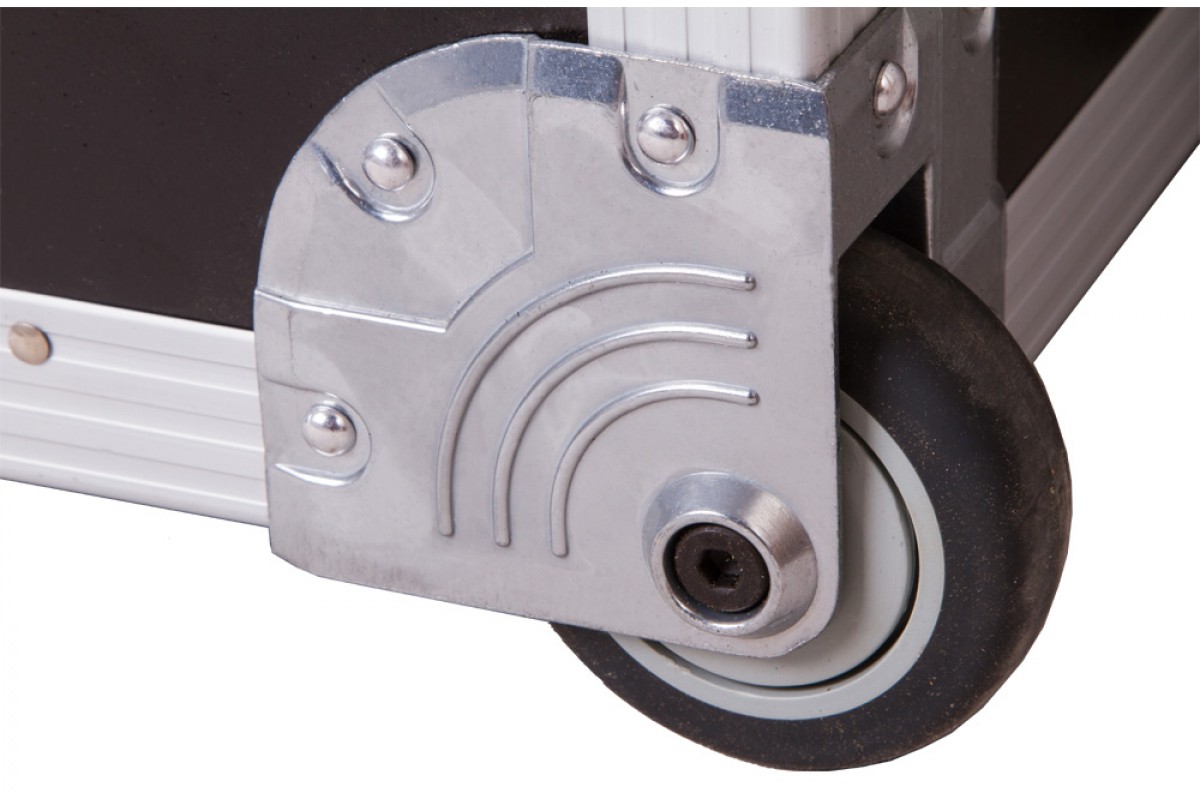 Кейс Sky-Watcher необходим для защиты монтировки от пыли, грязи и ударов. Он сделан из алюминия и укреплен металлическими ребрами жесткости. Кейс мало весит, но прочен и надежен. Кейс снабжен ручками для переноски и двумя замками. Их можно закрыть на ключ, который есть в комплекте. Кейс на колесиках, и при необходимости его можно везти за собой при помощи выдвижной ручки. Устойчивые ножки позволяют класть кейс на бок – так убирать и доставать монтировку будет удобнее.