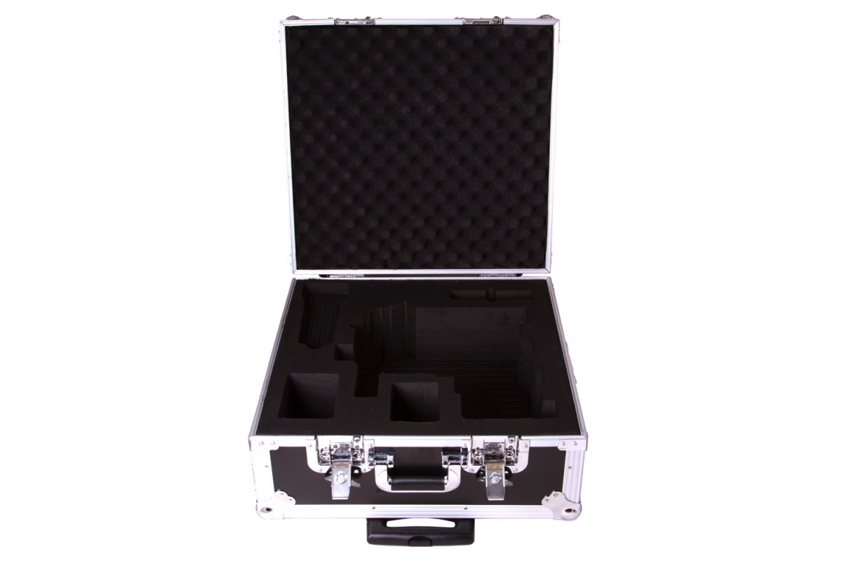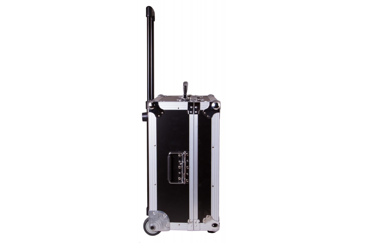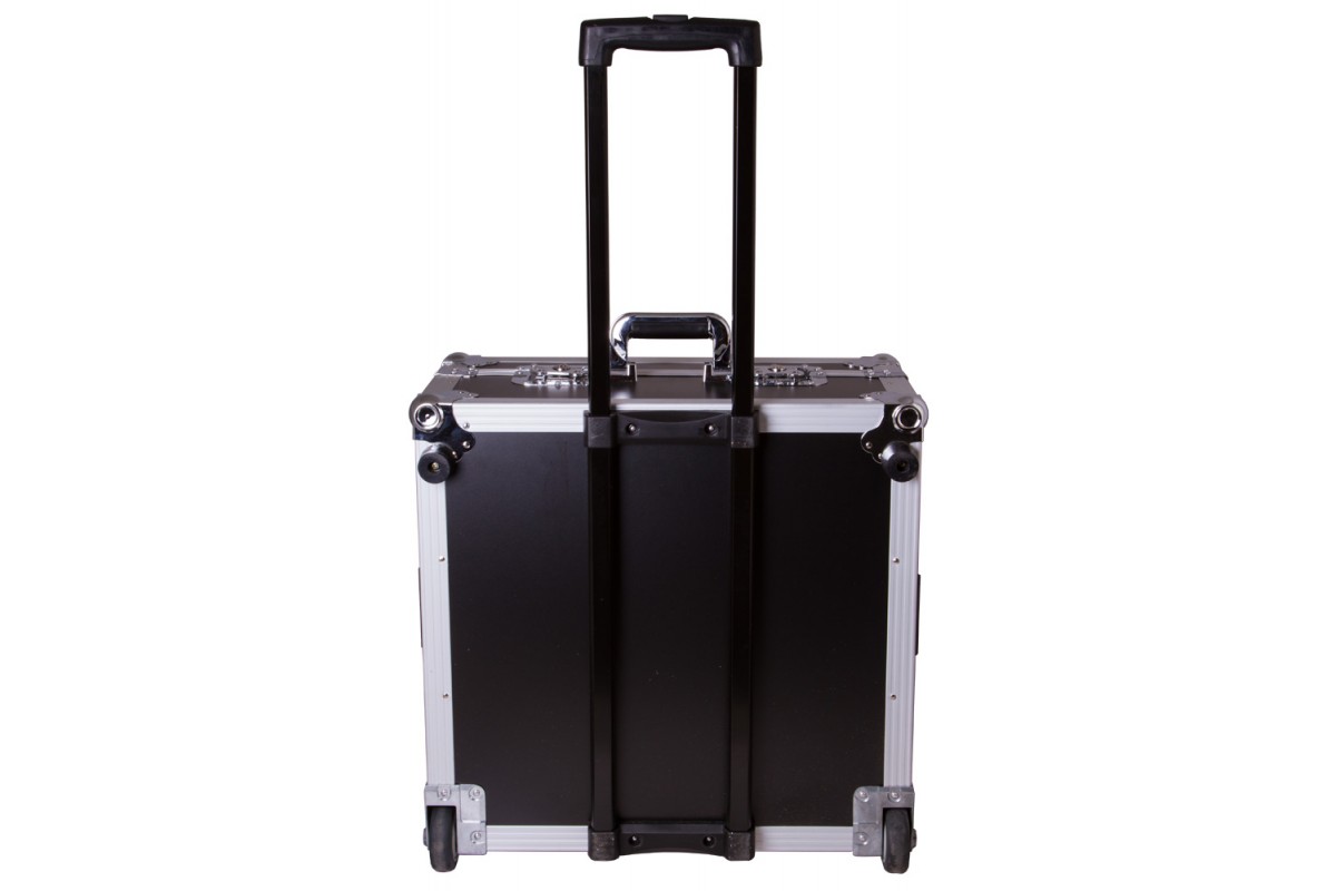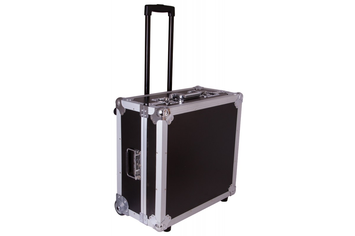 Кейс Sky-Watcher необходим для защиты монтировки от пыли, грязи и ударов. Он сделан из алюминия и укреплен металлическими ребрами жесткости. Кейс мало весит, но прочен и надежен. Кейс снабжен ручками для переноски и двумя замками. Их можно закрыть на ключ, который есть в комплекте. Кейс на колесиках, и при необходимости его можно везти за собой при помощи выдвижной ручки. Устойчивые ножки позволяют класть кейс на бок – так убирать и доставать монтировку будет удобнее.
