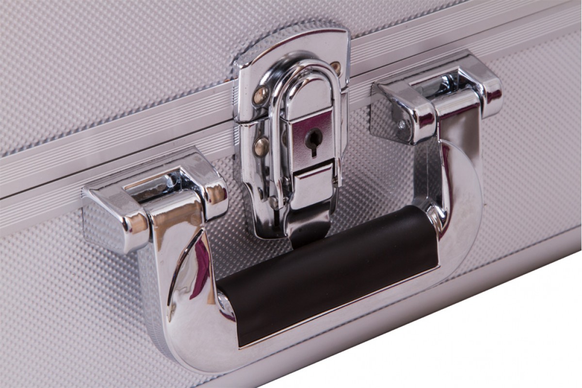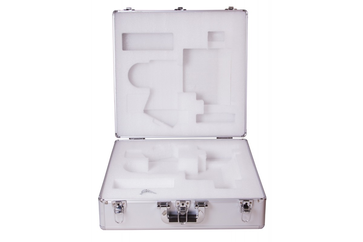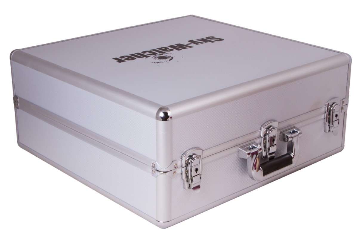 Кейс Sky-Watcher используется для транспортировки и хранения экваториальной монтировки EQ6. Внутри имеются отделения для самой монтировки и аксессуаров к ней. Кейс изготовлен из прочного алюминия. Ручка обеспечивает удобную переноску.
