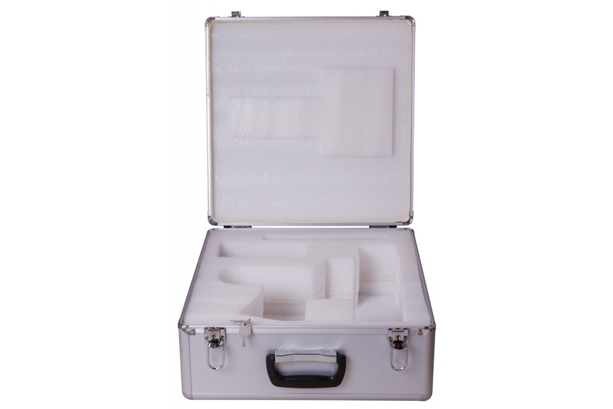 Алюминиевый кейс Sky-Watcher – прекрасный выбор для транспортировки монтировки HEQ5. Пенополиуретановый ложемент полностью повторяет форму монтировки и надежно фиксирует ее внутри кейса. Алюминиевые стенки защищают монтировку от ударов, пыли и грязи. Дополнительную надежность обеспечивают усиленные металлом углы и ребра жесткости.