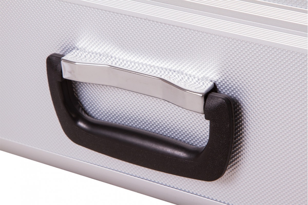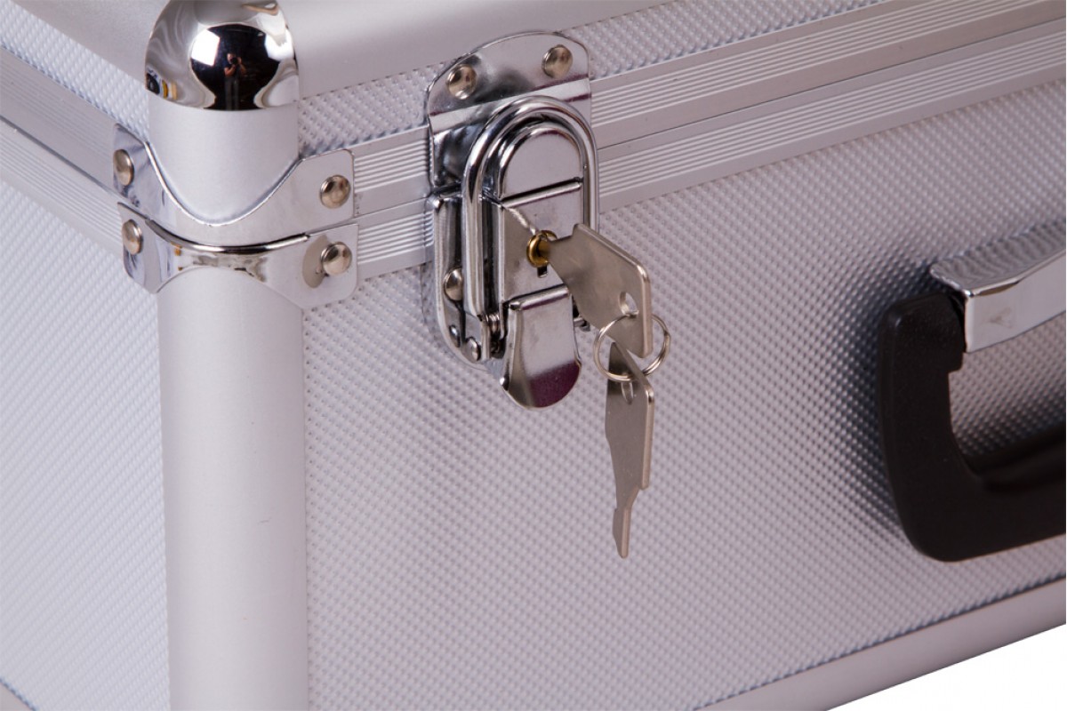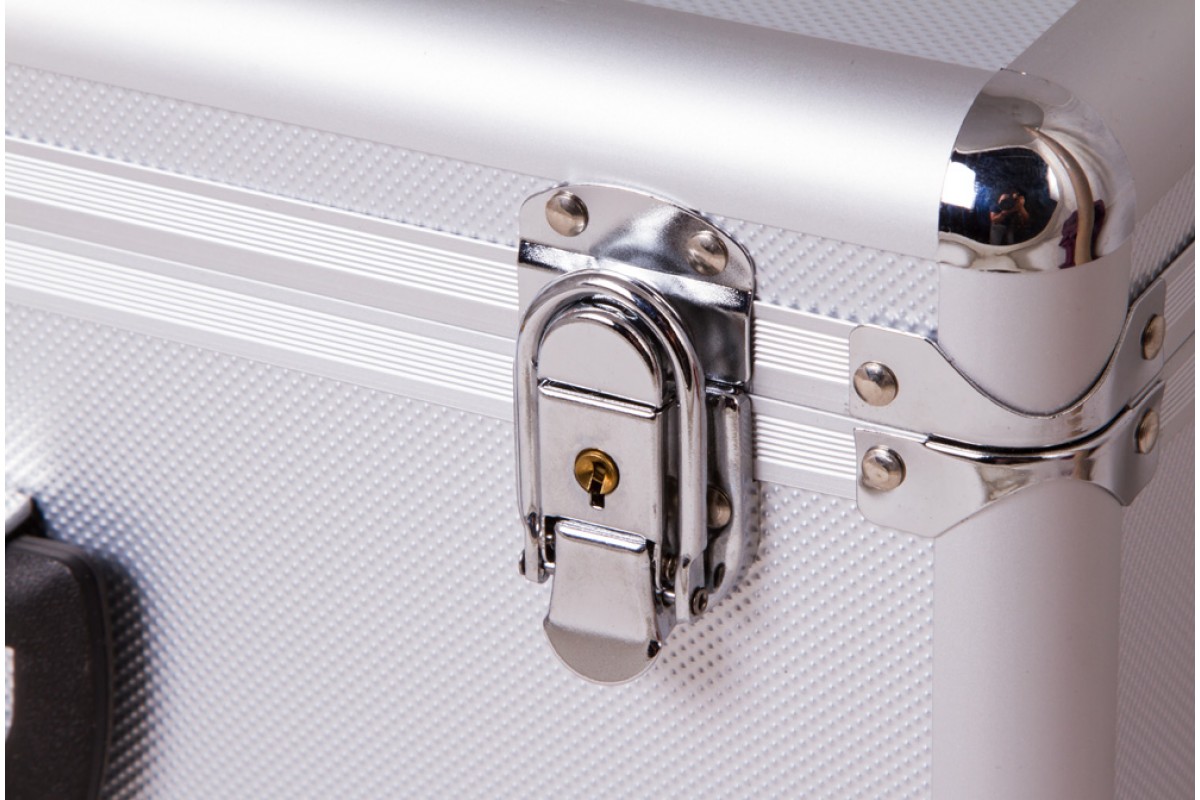 Кейс имеет ручку для переноски. Закрыть его можно на два замка. Ключи входят в комплект поставки.