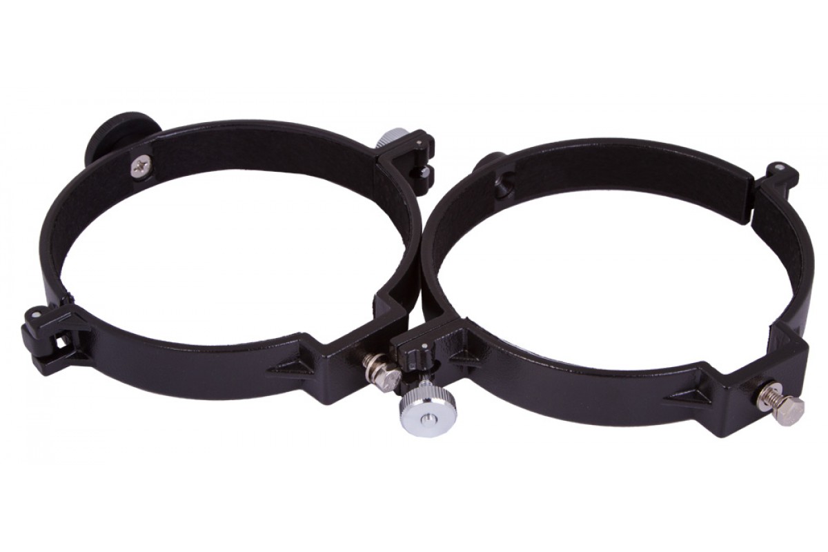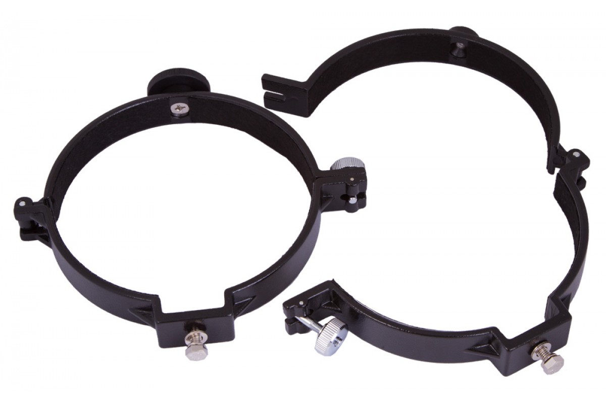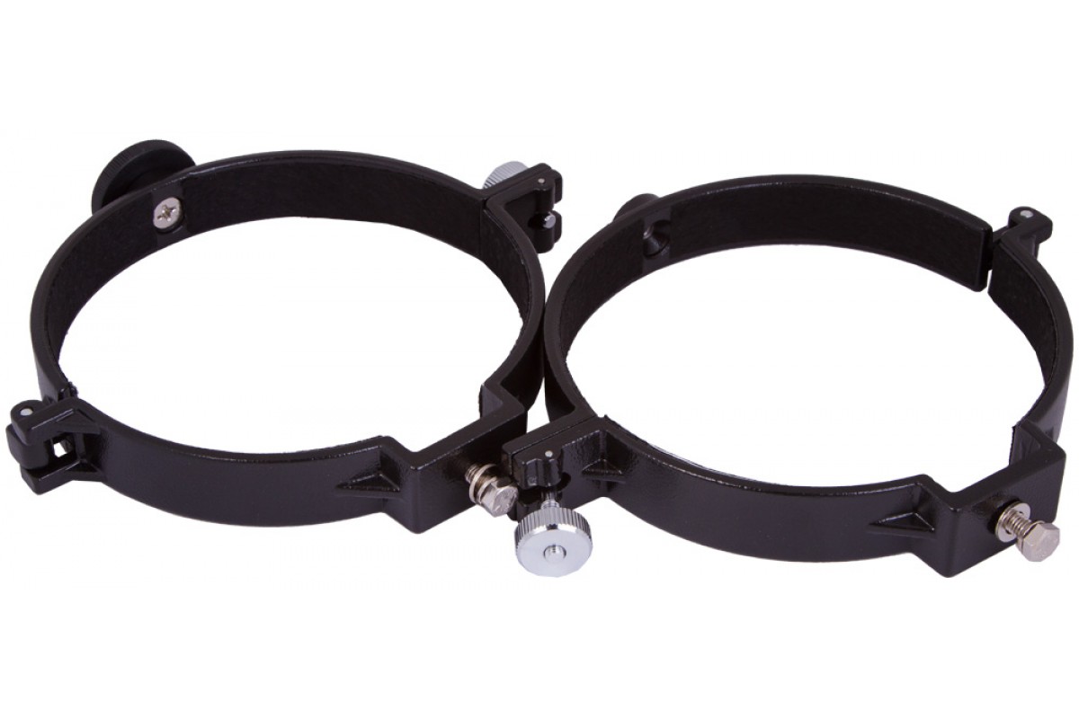 Крепежные кольца Sky-Watcher предназначены для крепления оптической трубы к монтировке. Данная модель совместима с рефлекторами с апертурой 114 мм. Кольца позволяют установить трубу на все экваториальные монтировки Sky-Watcher и на азимутальную монтировку Sky-Watcher AZ3. Кольца изготовлены из алюминиевого сплава. На одном кольце имеется крепление (1/4") для фотокамеры.