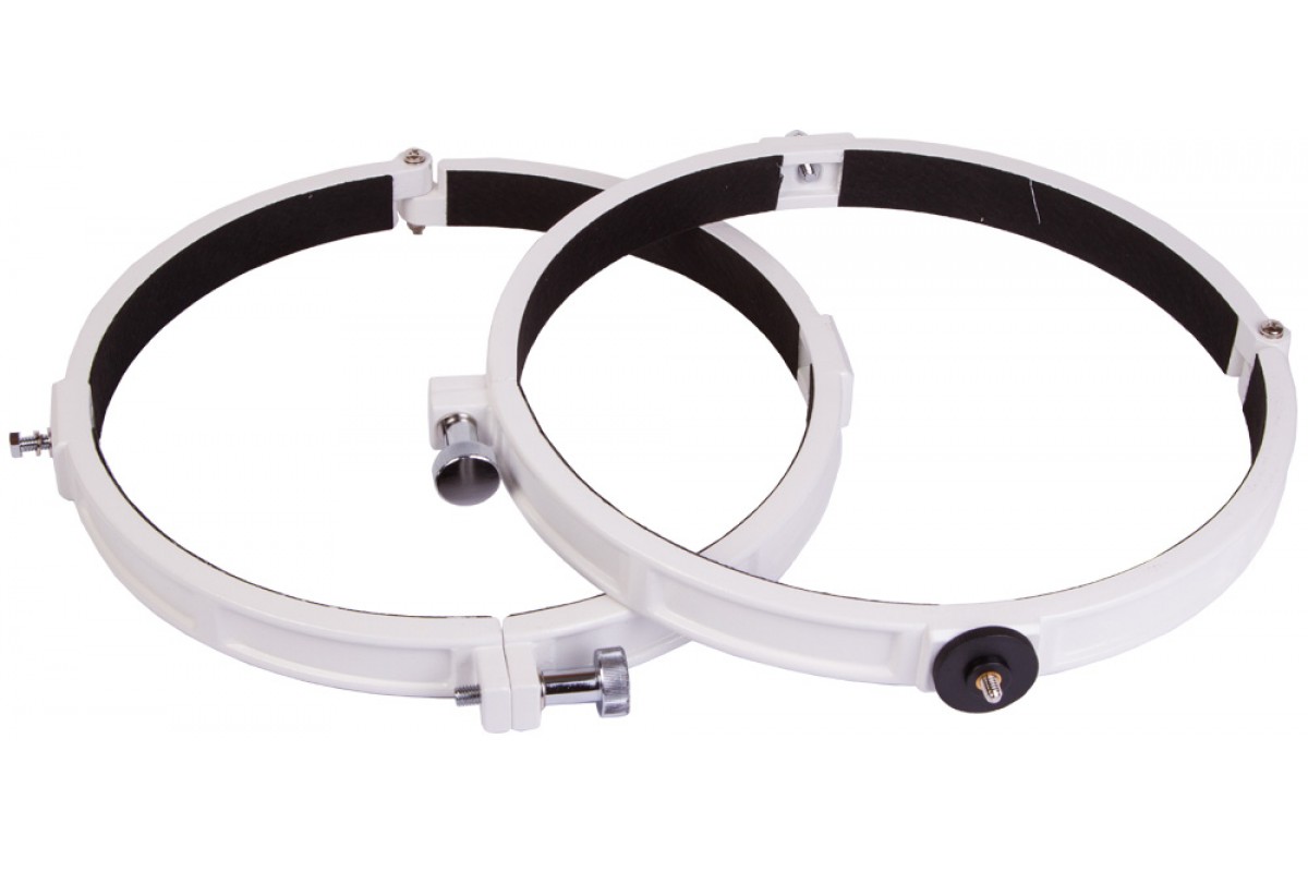Крепежные кольца Sky-Watcher необходимы для установки рефлекторов с апертурой 250 мм на монтировку. Эта модель позволяет установить телескоп на любую экваториальную монтировку Sky-Watcher и на азимутальную монтировку Sky-Watcher AZ3. Кольца сделаны из алюминиевого сплава, отличающегося легкостью и прочностью. Одно кольцо снабжено винтом для установки камеры.