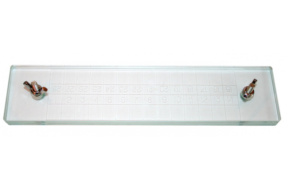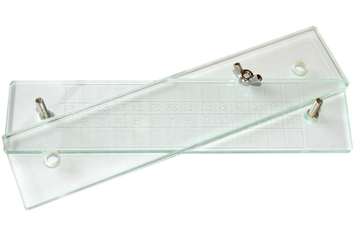 Компрессорий представляет собой два толстых стекла, которые прижимаются друг к другу с помощью винтов и фиксируются барашковыми гайками. Пробы мяса необходимо разместить на нижнем стекле в пронумерованных прямоугольных ячейках и плотно прижать верхним стеклом, затянув гайки. Сплющенные образцы можно эффективно исследовать на увеличении, выявляя присутствие паразитов, их личинок и капсул. Всего приспособление вмещает до 28 проб – это позволяет провести исчерпывающий анализ и добиться точного результата.
