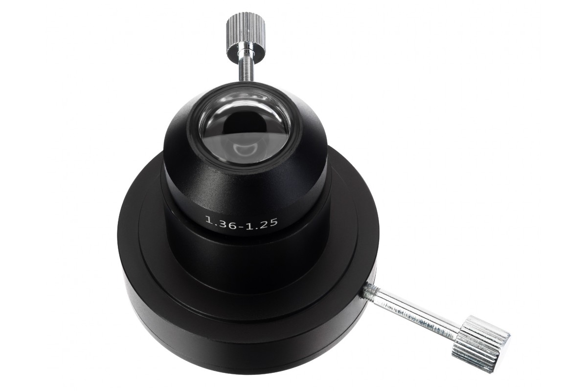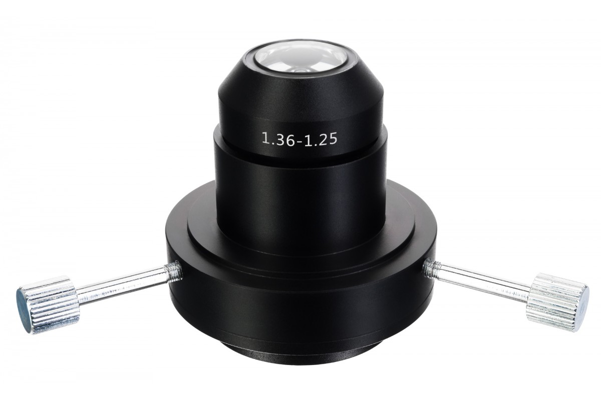 Этот конденсор темного поля можно устанавливать на микроскопы Levenhuk MED 30/35/40/45 на место штатного светлопольного конденсора. Также он может использоваться на других моделях микроскопов, если они имеют аналогичные параметры. Корпус конденсора сделан из алюминия, оптика – из стекла. Предназначен для работы только с масляно-иммерсионными объективами.