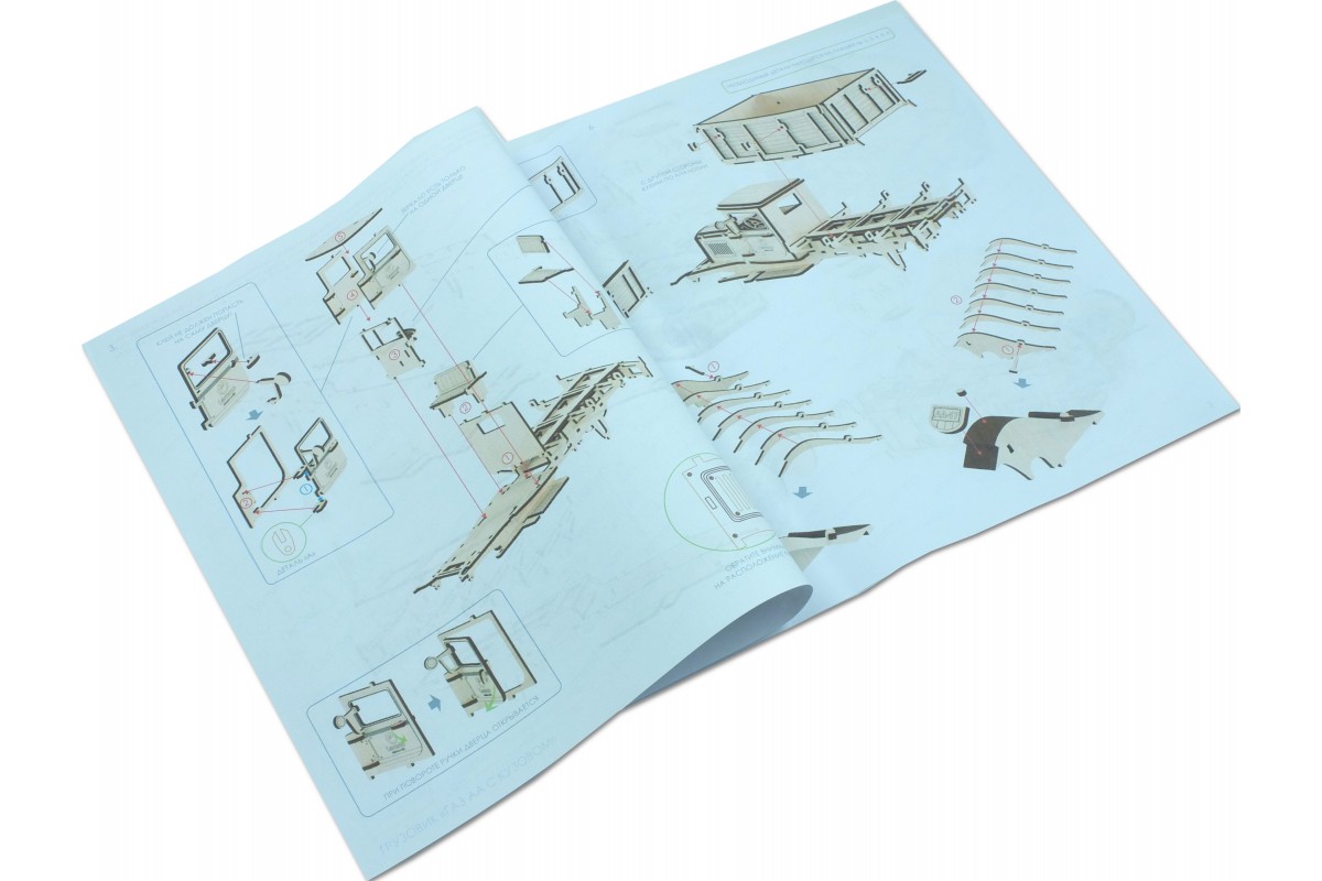 Все детали выполнены из качественной древесины и имеют сильный насыщенный запах дерева. Наборы укомплектованы клеем ПВА и наждачной бумагой. Любой конструктор после сборки можно раскрасить акриловыми и гуашевыми красками, но даже без этого в результате получается полноценная игрушка.