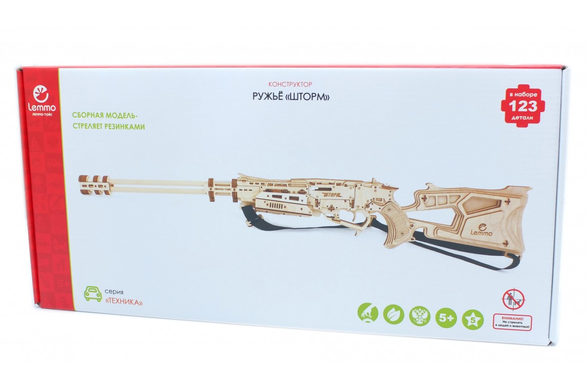 Конструктор 3D деревянный Lemmo "Ружье "Шторм" резинкострел" - это замечательный подарок для любого мальчишки, который любит оружие и хочет почувствовать себя настоящим воином.