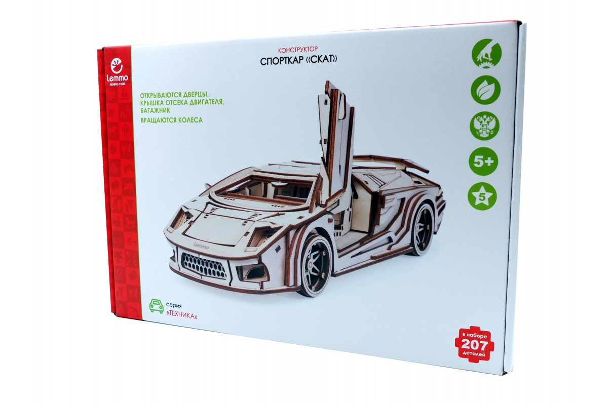 Конструктор 3D деревянный Lemmo "Спорткар "СКАТ" - это не просто игрушка, это возможность для развития мелкой моторики, воображения, пространственного мышления и предметного моделирования.