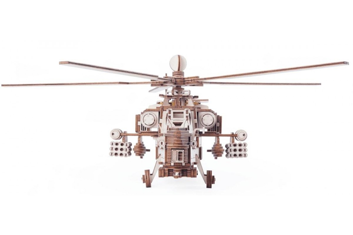 Конструктор собирается с помощью клея и очень большого желания получить уникальную модель военного вертолета.