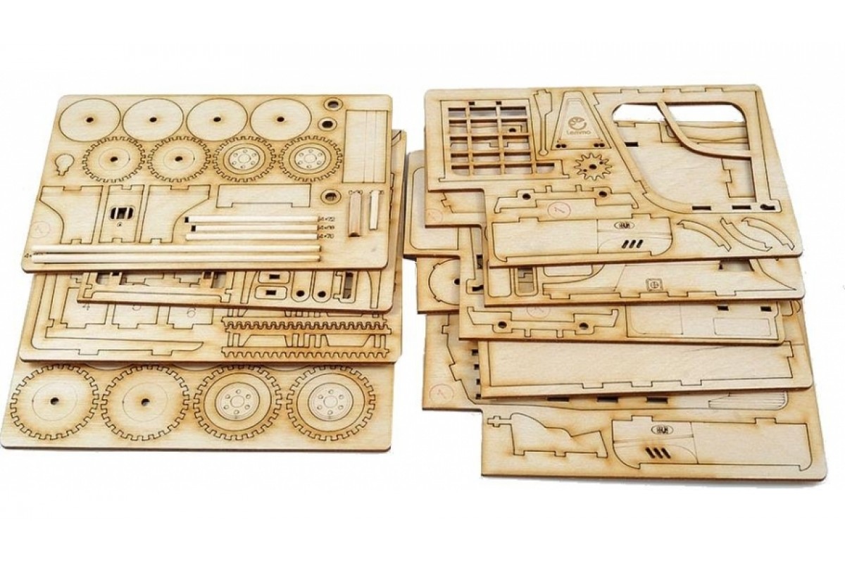 Все детали выполнены из качественной древесины и имеют сильный насыщенный запах дерева. Наборы укомплектованы клеем ПВА и наждачной бумагой. Любой конструктор после сборки можно раскрасить акриловыми и гуашевыми красками, но даже без этого в результате получается полноценная красивая игрушка с подвижными элементами.