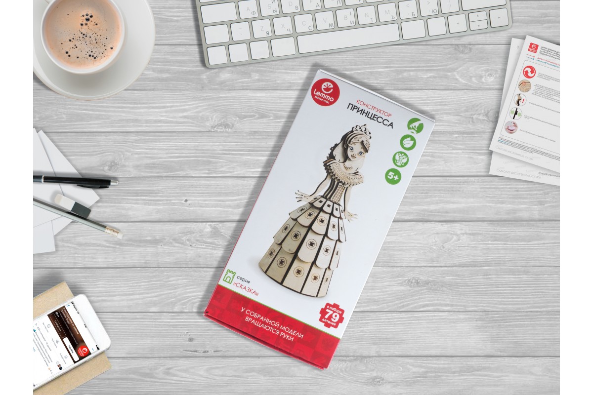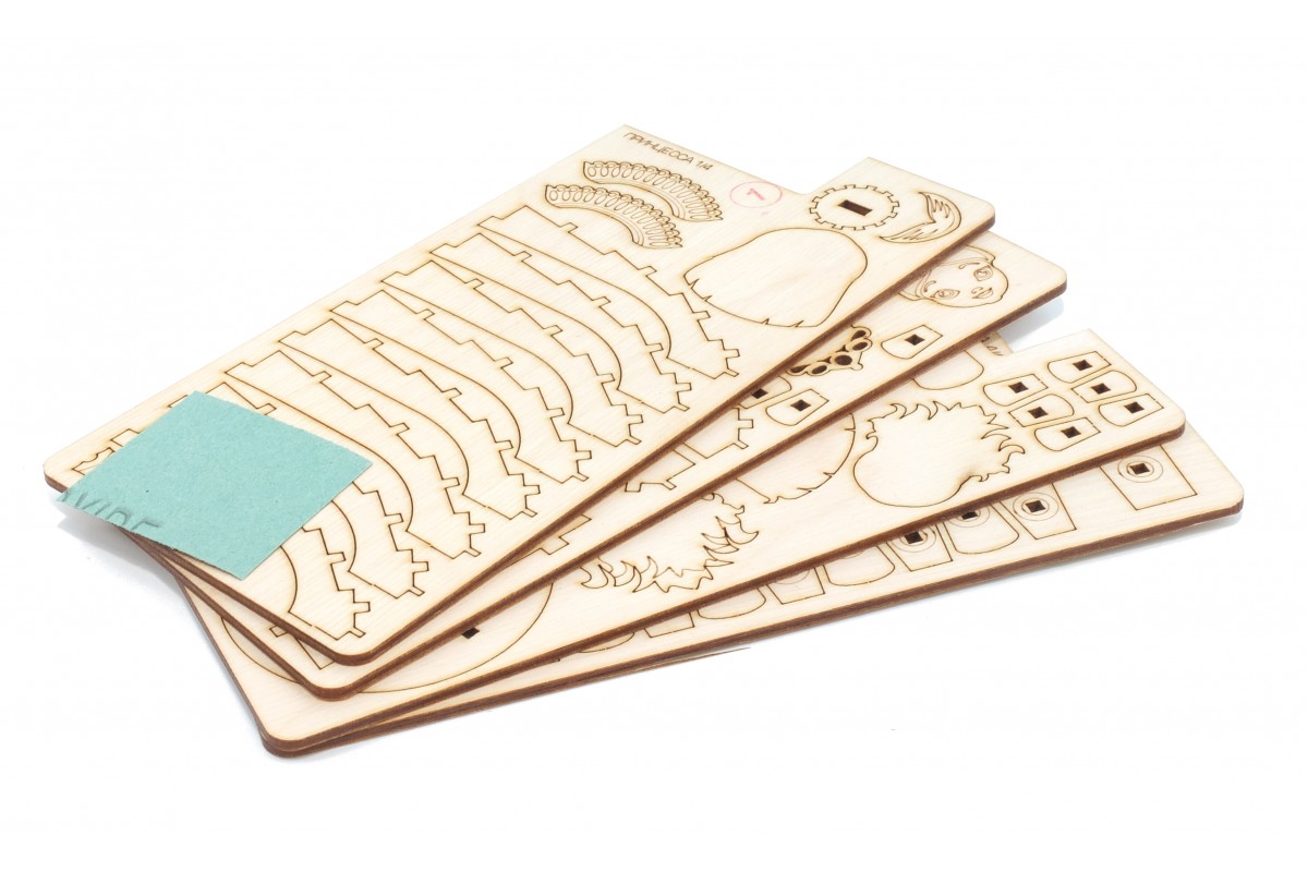 Все детали выполнены из качественной древесины и имеют сильный насыщенный запах дерева. Наборы укомплектованы клеем ПВА и наждачной бумагой. Любой конструктор после сборки можно раскрасить акриловыми и гуашевыми красками, но даже без этого в результате получается полноценная красивая игрушка с подвижными элементами.