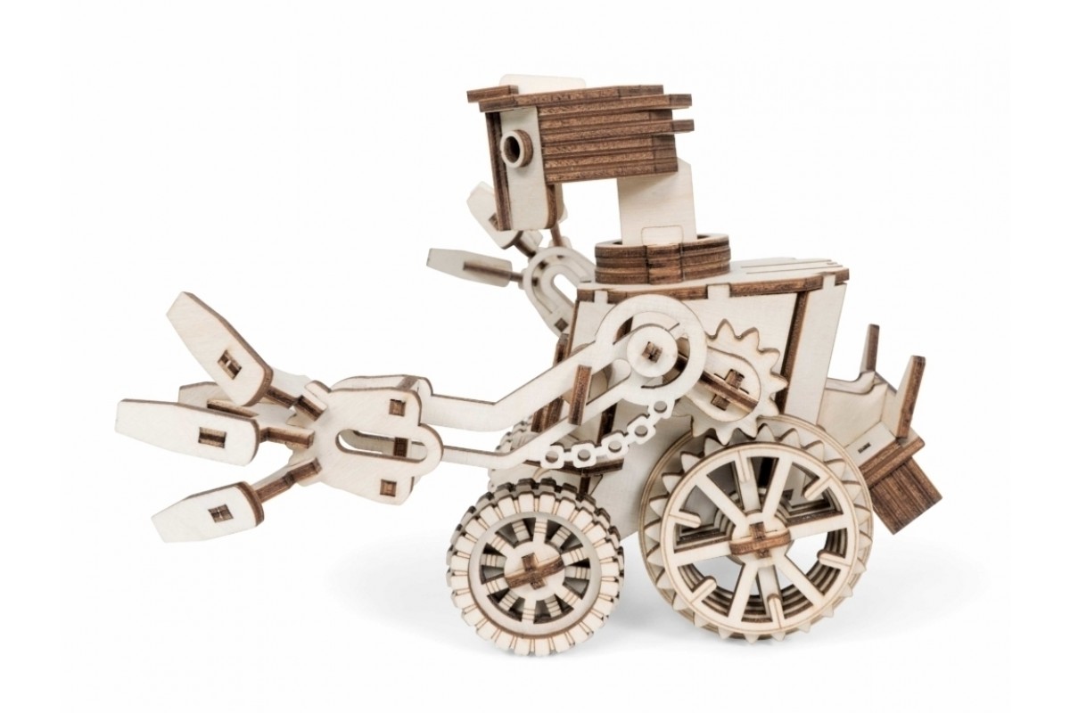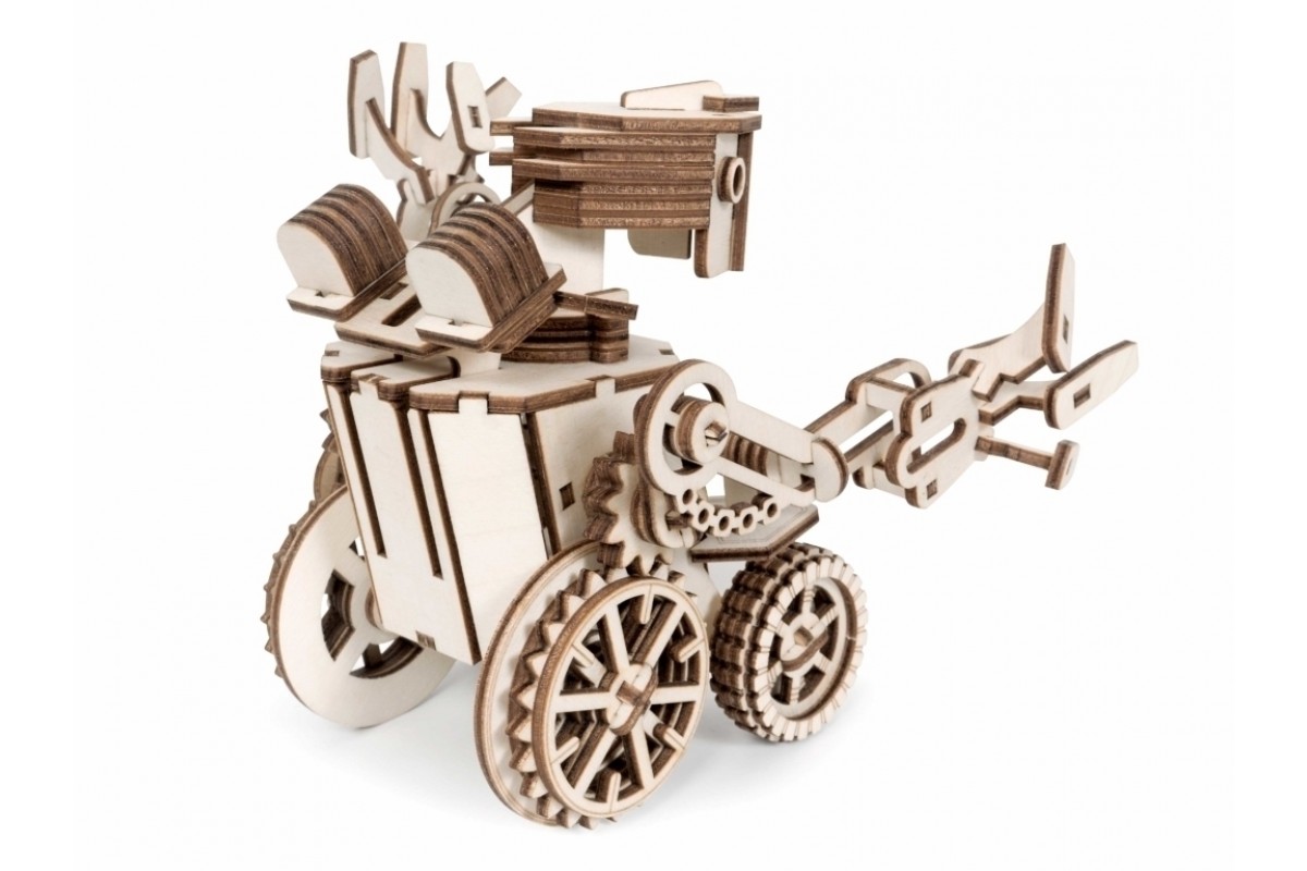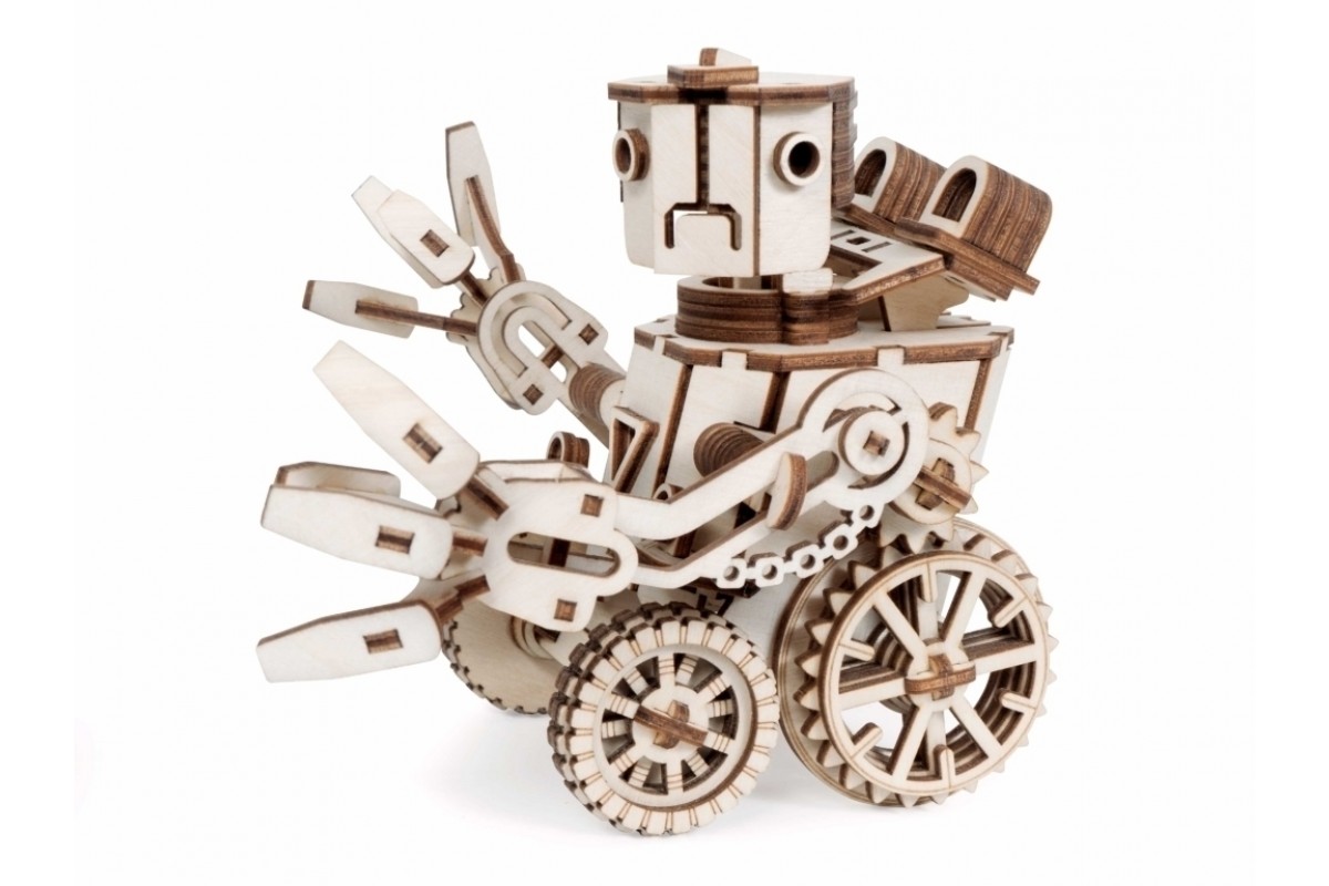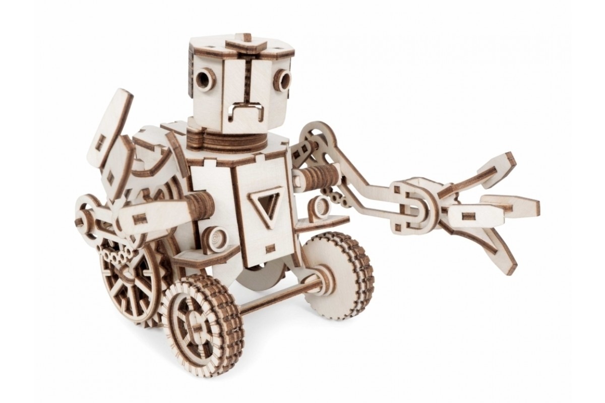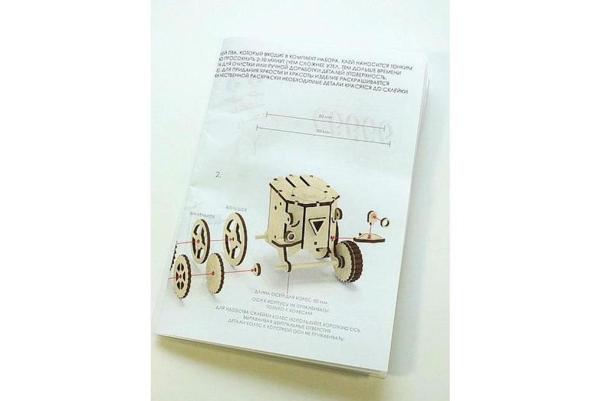 Все детали выполнены из качественной древесины и имеют сильный насыщенный запах дерева. Наборы укомплектованы клеем ПВА и наждачной бумагой. Любой конструктор после сборки можно раскрасить акриловыми и гуашевыми красками, но даже без этого в результате получается полноценная красивая игрушка с подвижными элементами.