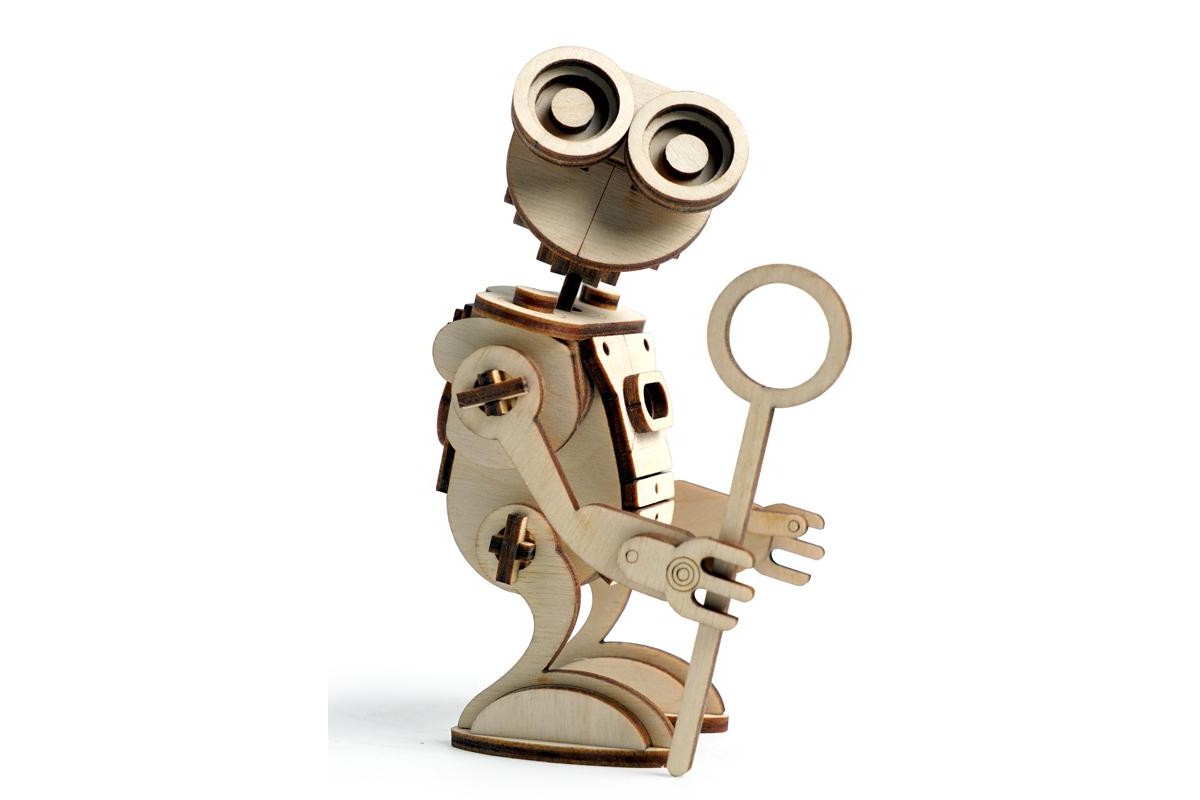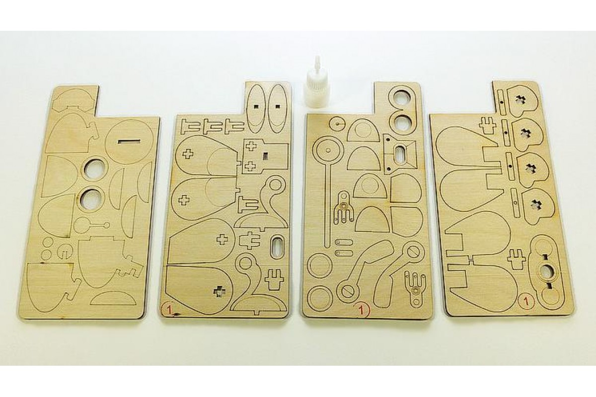 Все детали выполнены из качественной древесины и имеют сильный насыщенный запах дерева. Наборы укомплектованы клеем ПВА и наждачной бумагой. Любой конструктор после сборки можно раскрасить акриловыми и гуашевыми красками, но даже без этого в результате получается полноценная красивая игрушка с подвижными элементами.