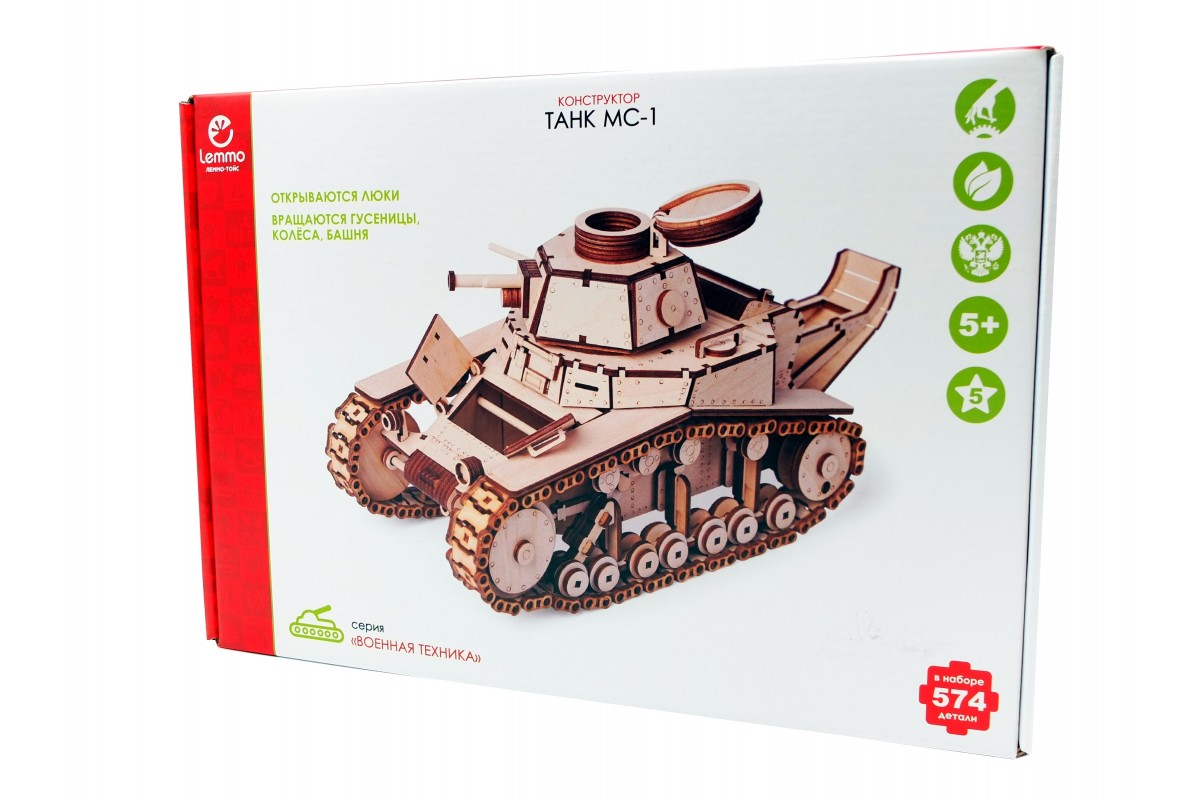 Танк деревянный с подвижным деталями МС-1 Леммо - легкий советский пехотный танк составлял основу советского танкового парка, он не использовался в Великой Отечественной Войне и позже был заменен другим танком, но зато это одна из самых популярных моделей у наших покупателей.
