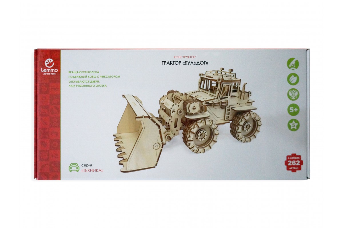 Набор Трактор Бульдог рекомендован для детей от 5 лет. У собранной модели вращаются колеса, поднимается и фиксируется ковш.