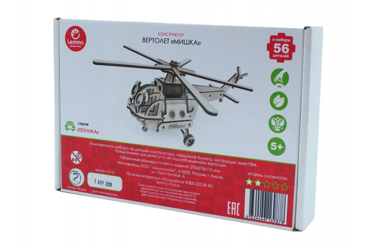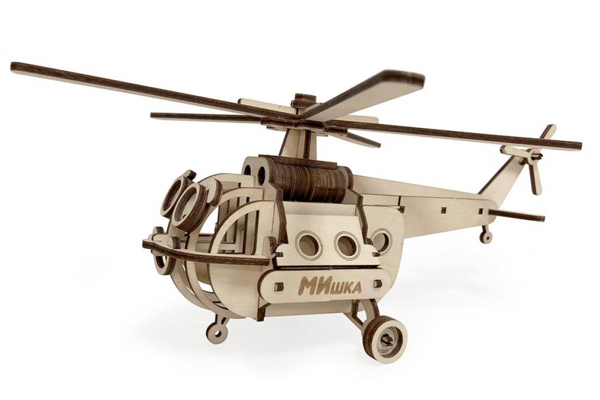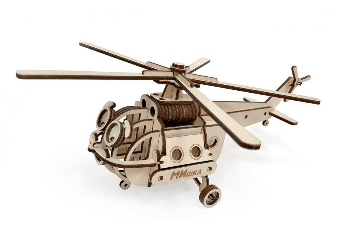 Замечательный конструктор Вертолет "МИшка" из дерева от компании "Леммо".
