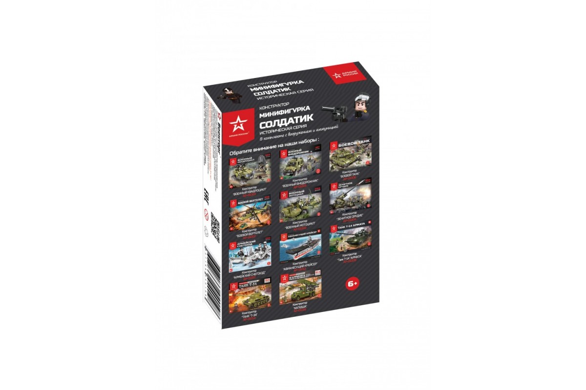 Конструктор Армия России - Минифигурка Солдатик - Историческая серия - АР-01015. В упаковке находится одна из фигурок, указанных на обложке. Вы не знаете, какая фигурка внутри. Ваш выбор случаен. В коробке находится 1 из 4 солдатиков времен Великой Отечественной войны. Состав отличается в зависимости от типа фигурки. Внимание ! Содержит мелкие детали. Опасность удушения. Не рекомендуется для детей младше 3-х лет.