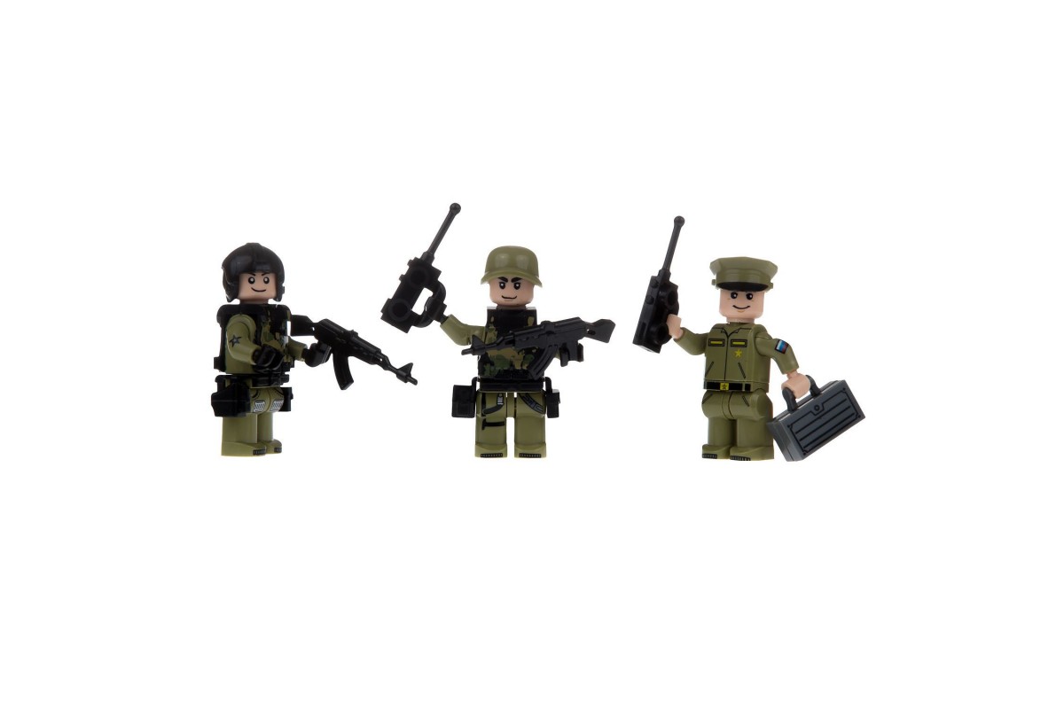 - В комплекте 3 мини фигурки с копиями вооружения и снаряжения для их экипировки.