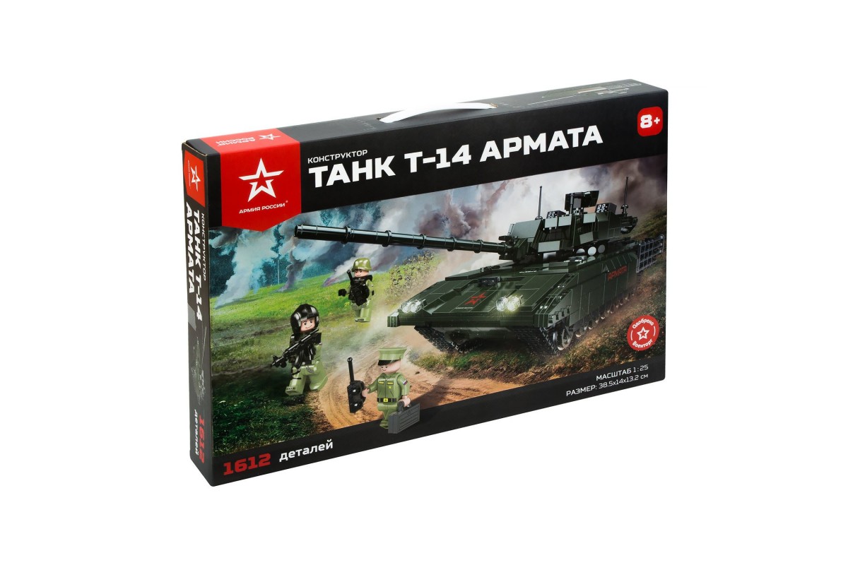Конструктор ''Танк Т-14 ''АРМАТА'' - АР-01009 - это набор, в состав которого входят 1612 прочных безопасных пластиковых деталей для сборки копии модели Танка Т-14 на платформе АРМАТА, стоящего на вооружении Российской Армии.