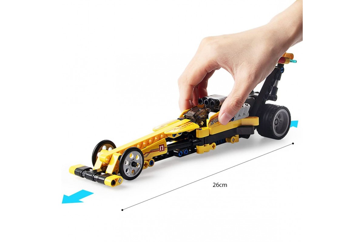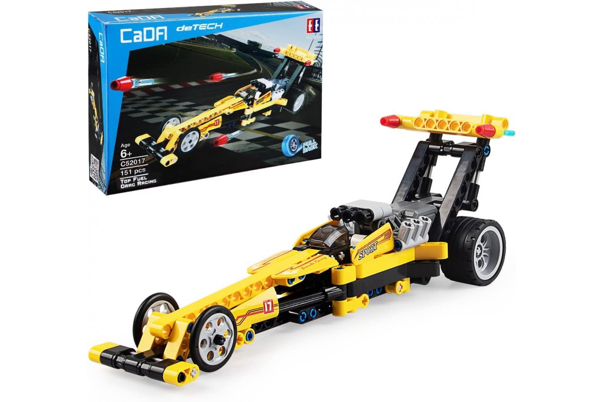 Конструктор CADA deTech драгстер совместим с C52016W, инерционный, 151 деталь - C52017W - это детский конструктор CaDa С52017W, который представляет собой набор для постройки гоночного автомобиля (драгстера) и содержит 151 деталь. Собрать её способен даже маленький ребёнок – благодаря подробной инструкции, качественной проработке деталей и простоте сборки. Машинка снабжена инерционным механизмом: стоит «проехаться» задним ходом и отпустить машинку, и она проедет сама до 10 м.