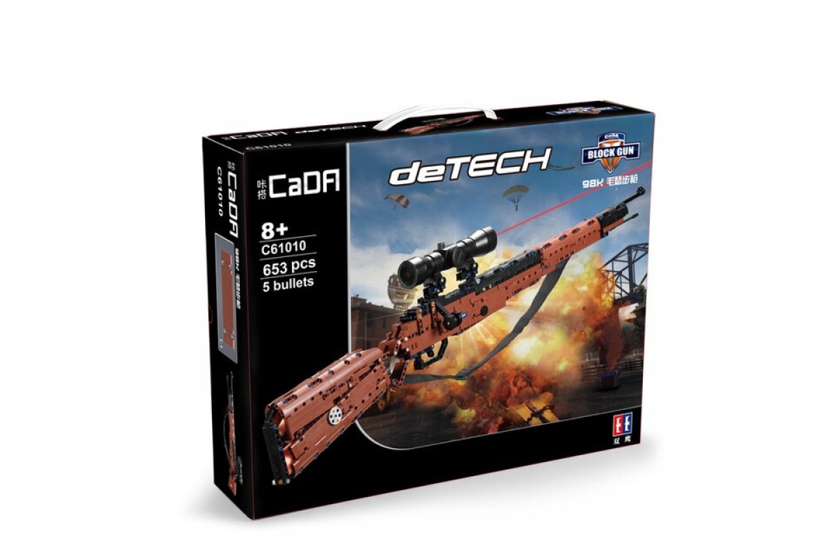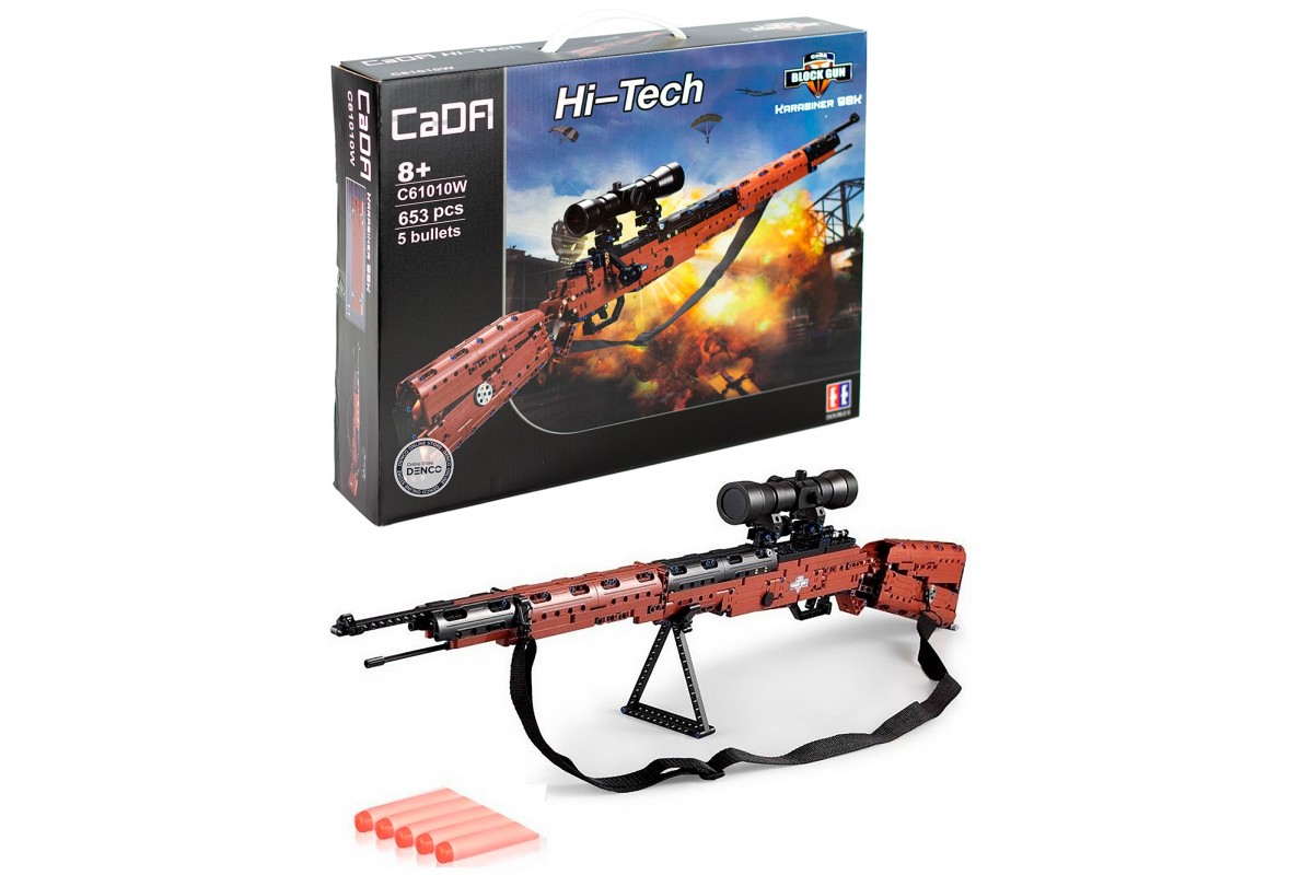 Конструктор CADA deTech карабин 98K, 653 элемента - C61010W - это высококачественный конструктор легендарной снайперской винтовки Mauser 98KВ от производителя Cada воспитает ребенка как настоящего защитника. Конструктор винтовки поражает своей детализацией и точностью. Винтовка стреляет мягкими пульками, не наносящими вред здоровью. В комплектации имеется подставка, превращающая винтовку в подобие пулемета.