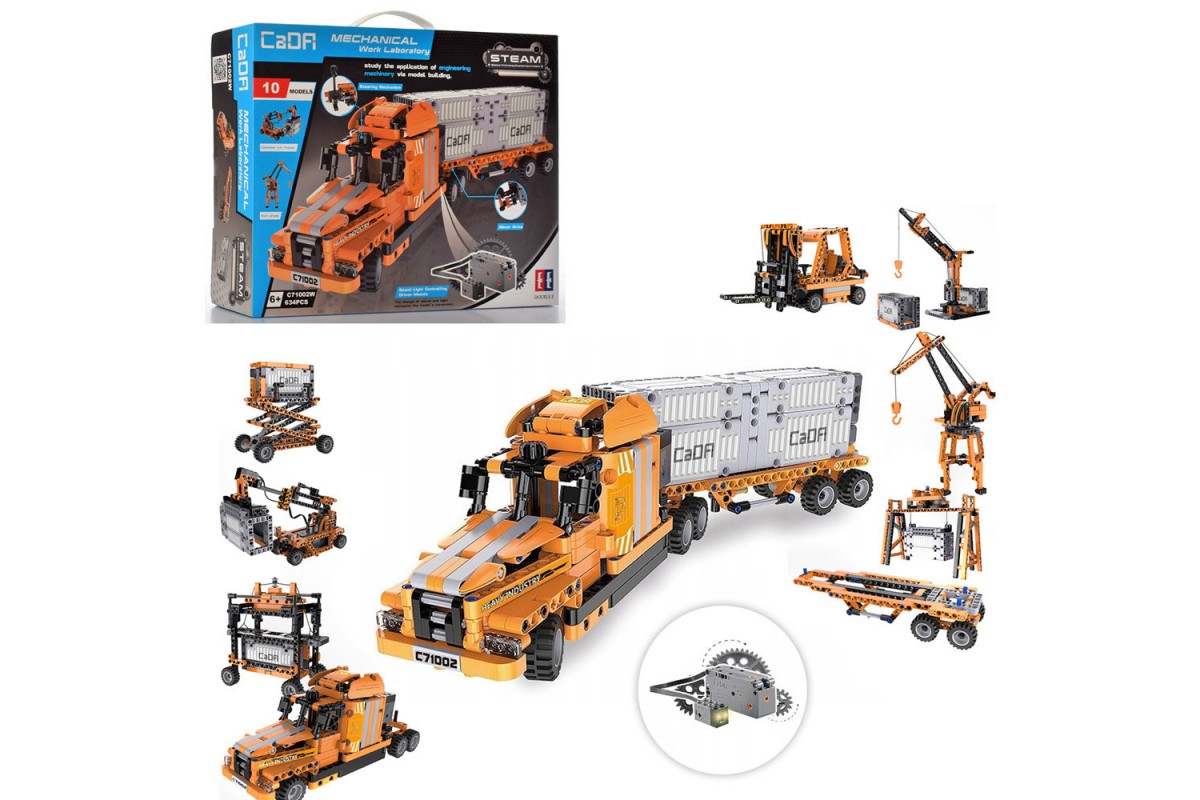 Конструктор CADA STEAM 10 в 1 механическая лаборатория - порт, 634 детали - C71002W представляет собой набор для постройки десяти вариантов спецтехники с сенсорным управлением и содержит 634 детали! Детали в наборе отлично подогнаны друг к другу, поэтому сборка не вызовет трудностей, а собранная машинка не развалится во время игры.