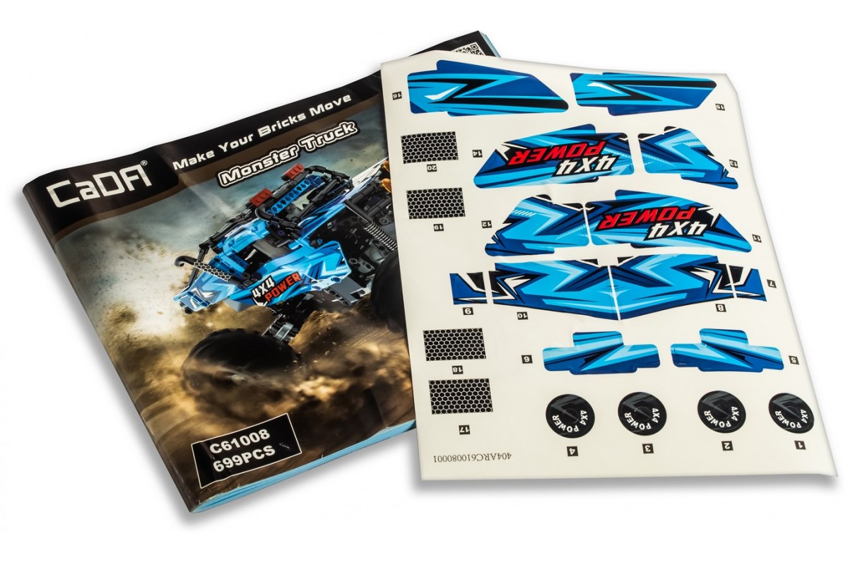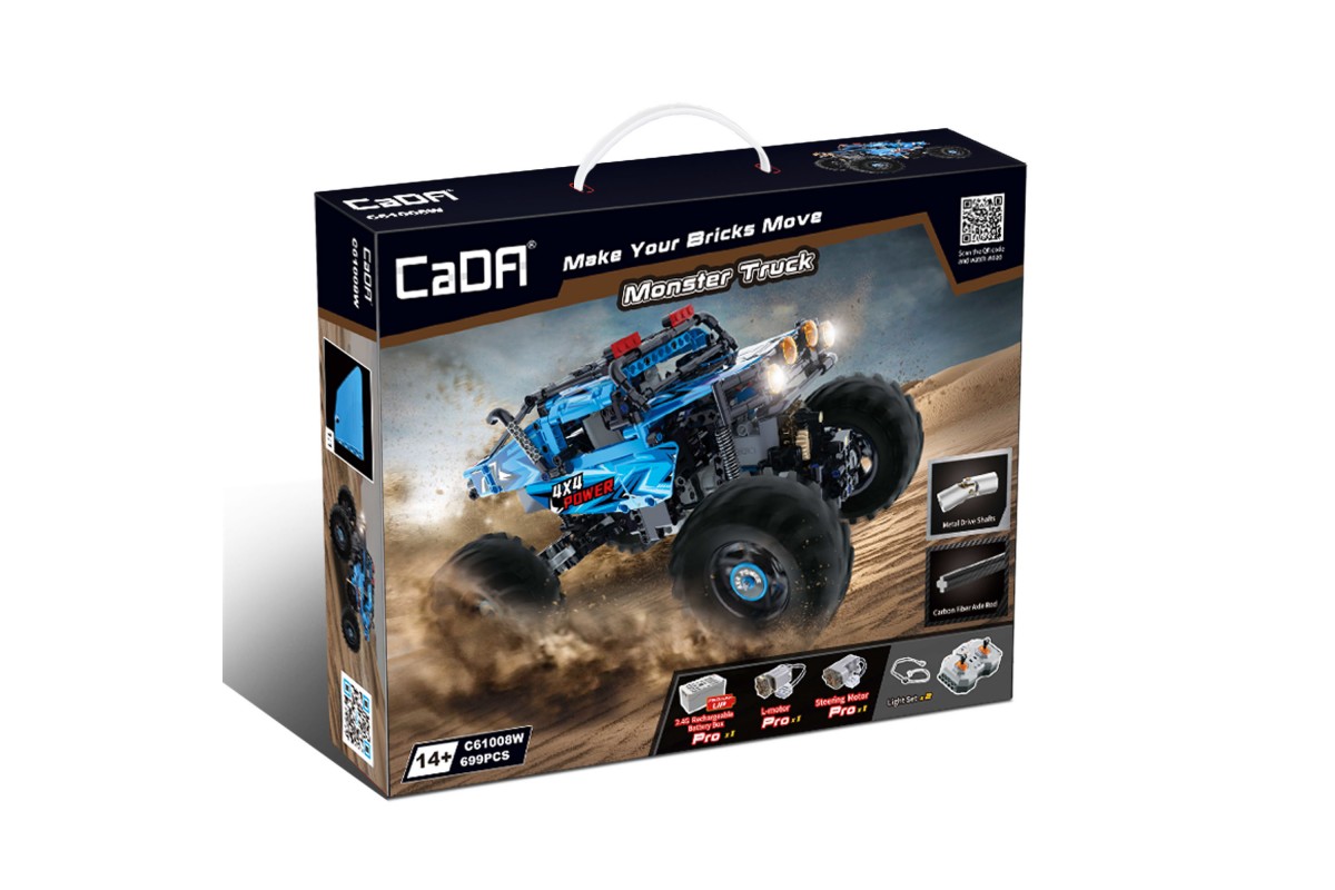 Конструктор Cada Внедорожник Монстр Трак (699 деталей, пульт, электропривод) - C61008W - это отличная развивающая игрушка, способная увлечь любого ребенка! Особенно если из набора в итоге получится красивый синий внедорожник Монстр Трак, оснащенный электродвигателем и пультом управления.