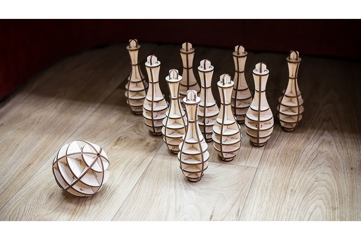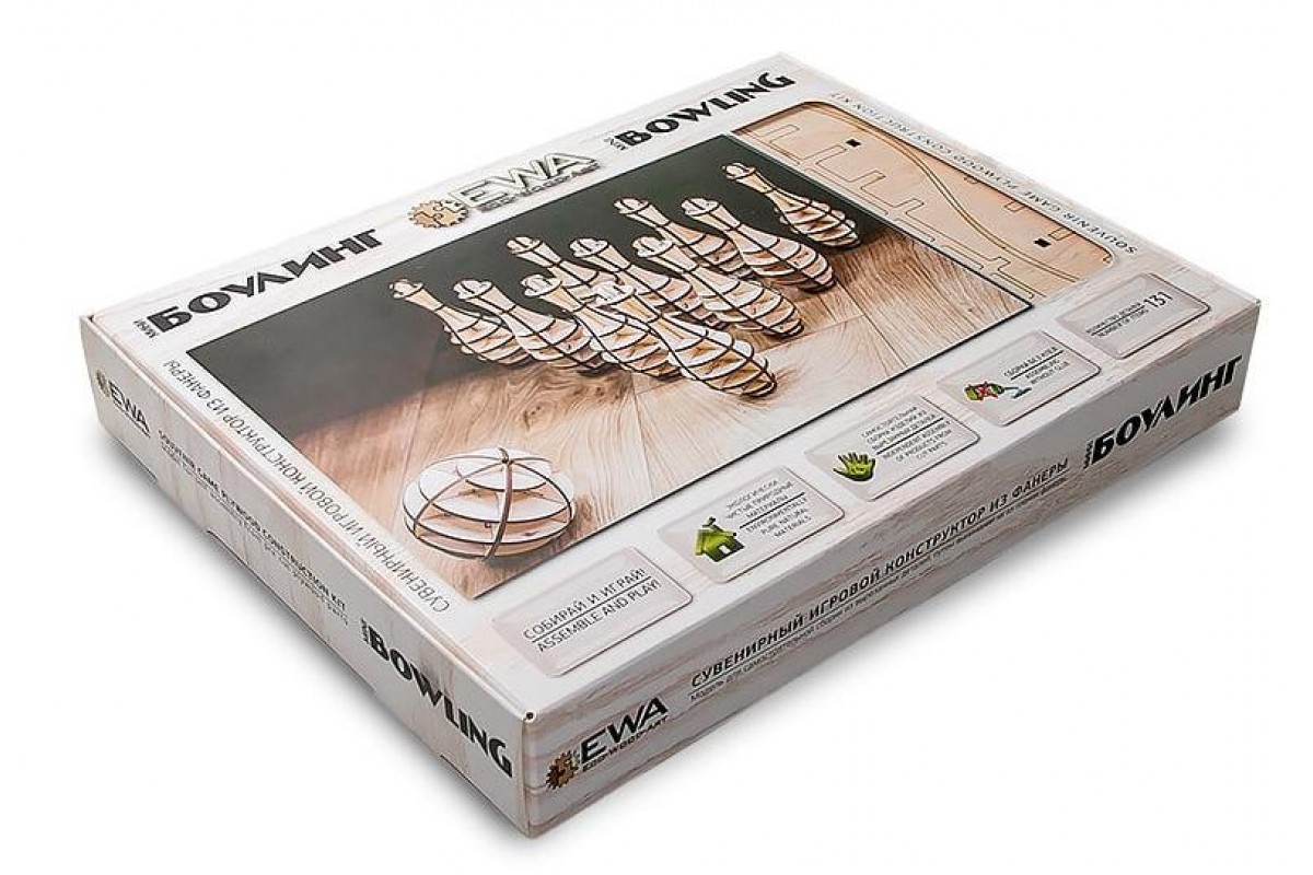 Конструктор Eco Wood Art для игры в миниатюрный боулинг в домашних условиях. Собрав модель можно будет весело проводить время играя с коллегами на работе или с друзьями! Комплект не большого размера, с иллюстрированной инструкцией на русском языке и наждачной бумагой.