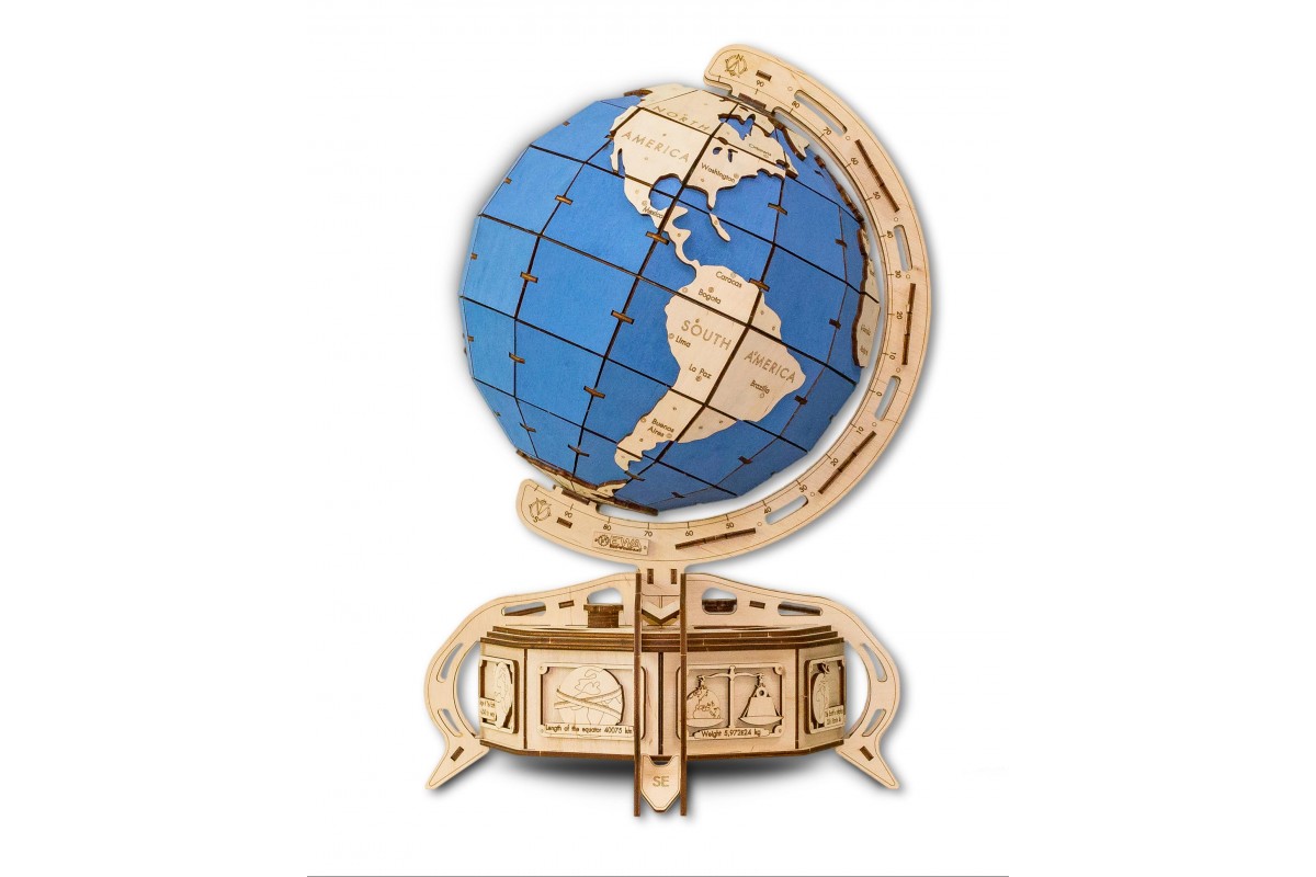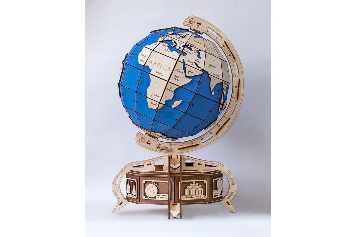 Глобус EWA — образовательная 3D модель Земли для самостоятельной сборки. Дает общее представление о расположении материков и океанов, предоставляет замечательную возможность смотреть, выбирать и показывать значимые места на планете. Идеальная модель для дома и офиса из экологически чистых материалов.