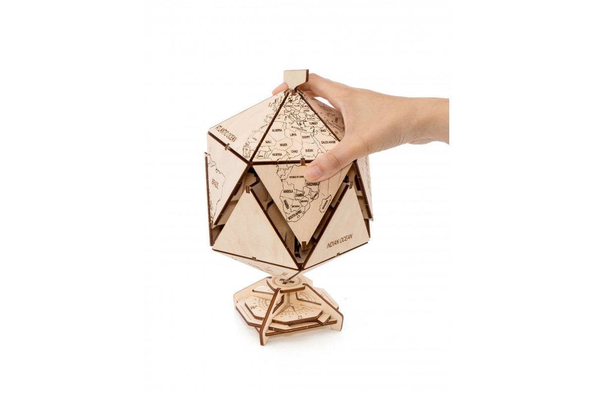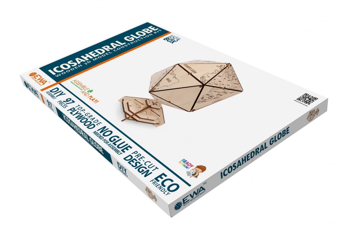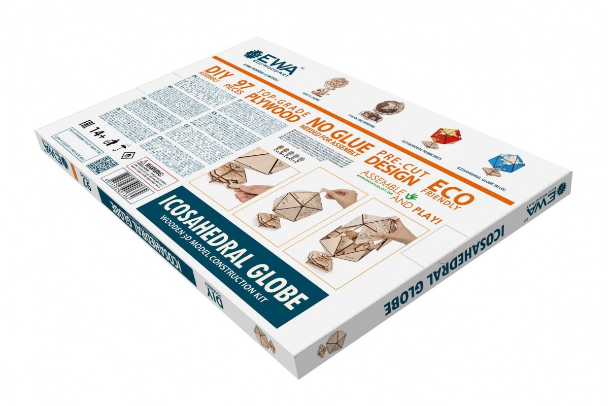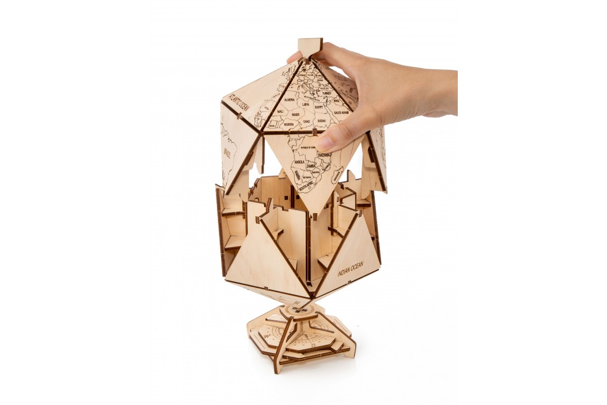 Конструктор деревянный 3D EWA Глобус Икосаэдр с секретом (шкатулка, сейф) красный