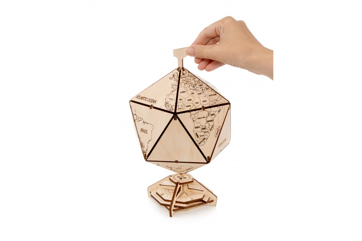 Глобус икосаэдрической формы с секретным отделением внутри шара и секретным механическим запирающим механизмом.