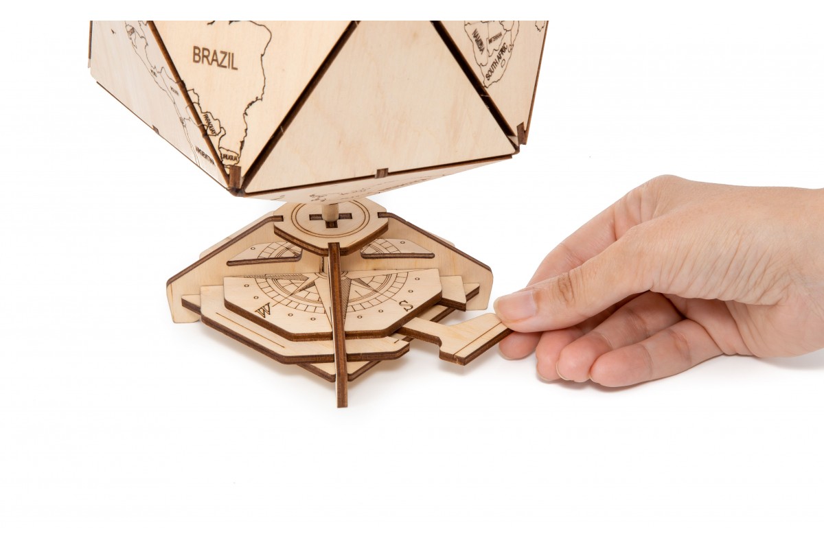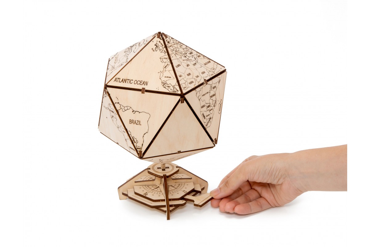 Глобус выполнен из дерева (березовой фанеры высшего сорта) и окрашен экологичными красками.