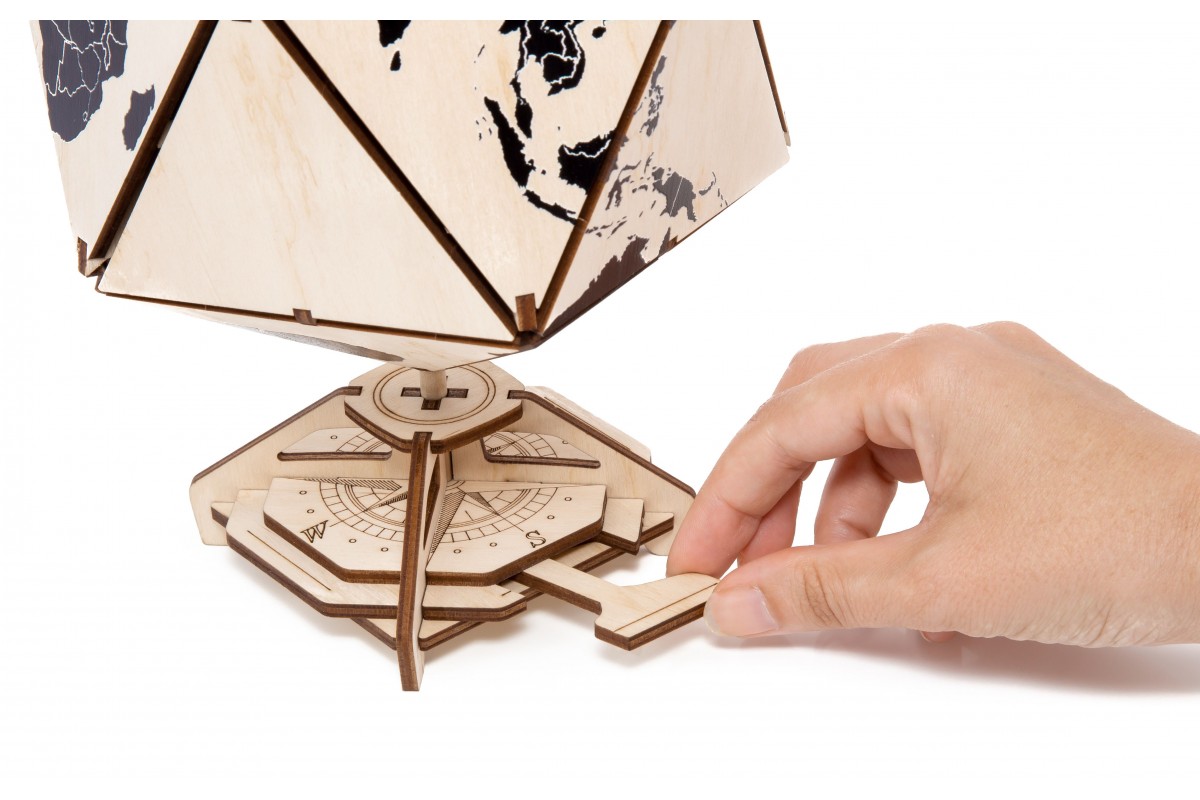 Глобус выполнен из дерева (березовой фанеры высшего сорта) и окрашен экологичными красками.