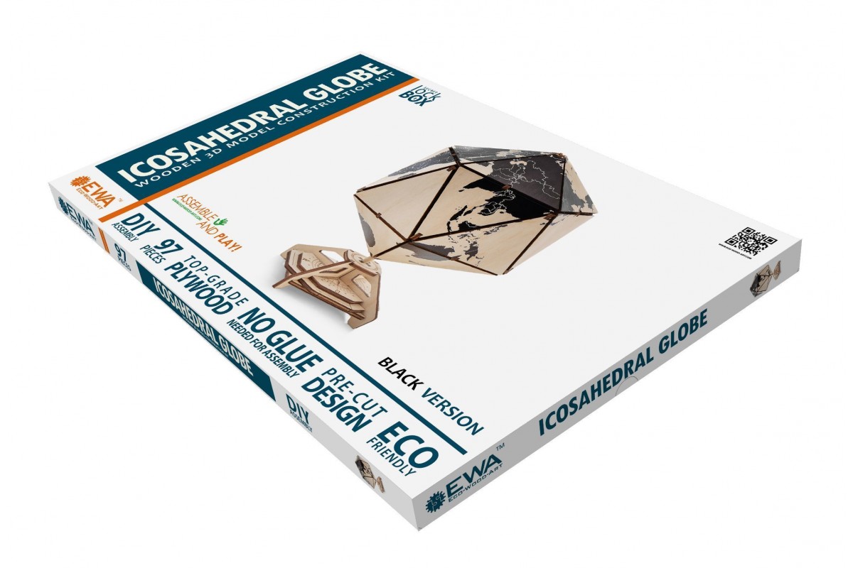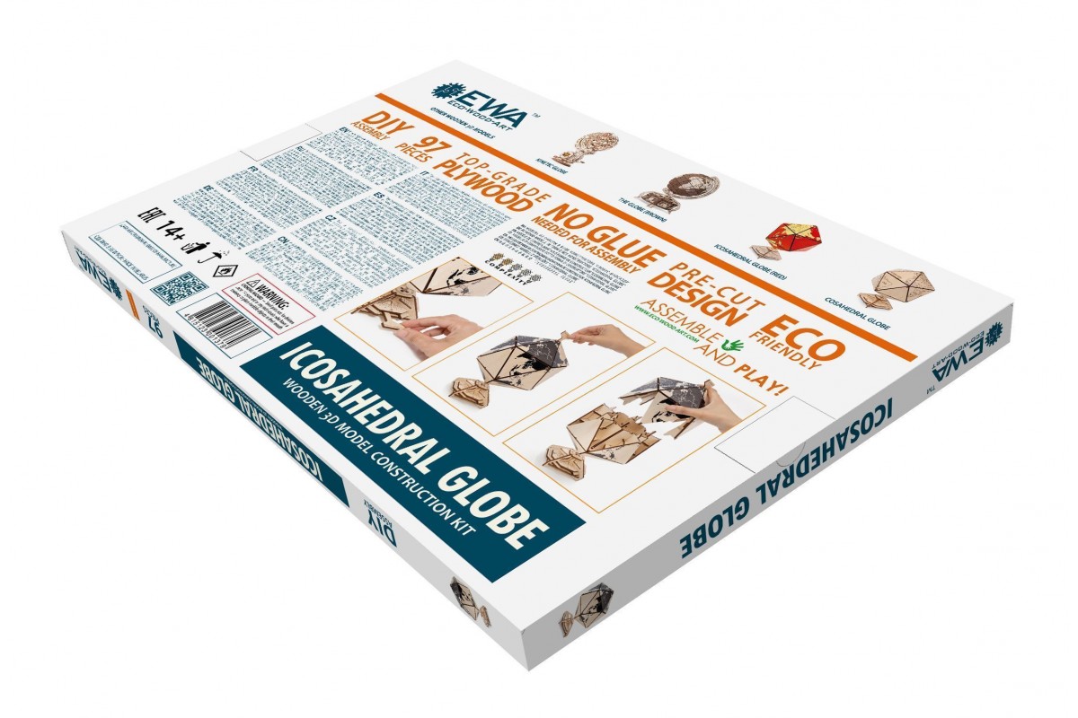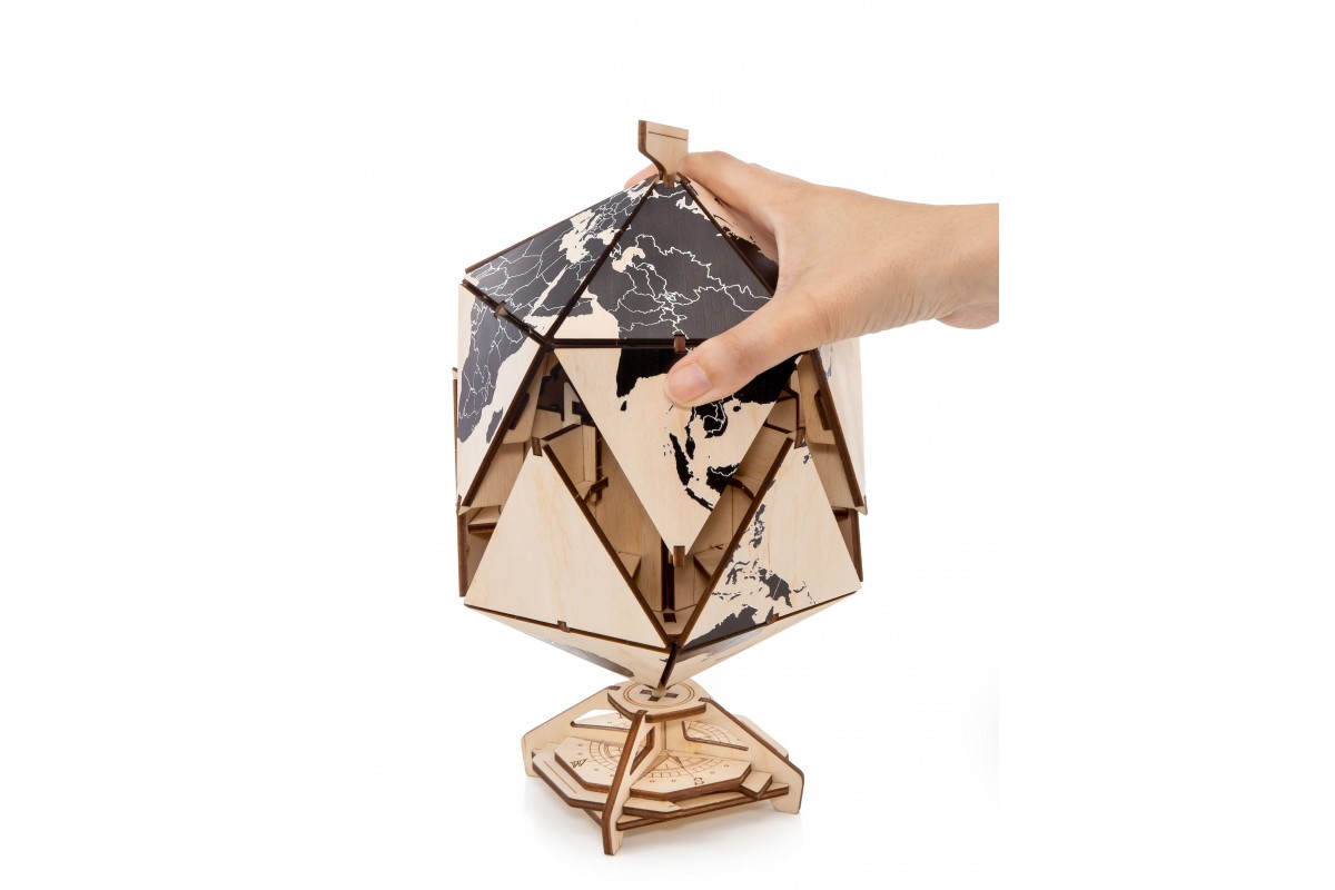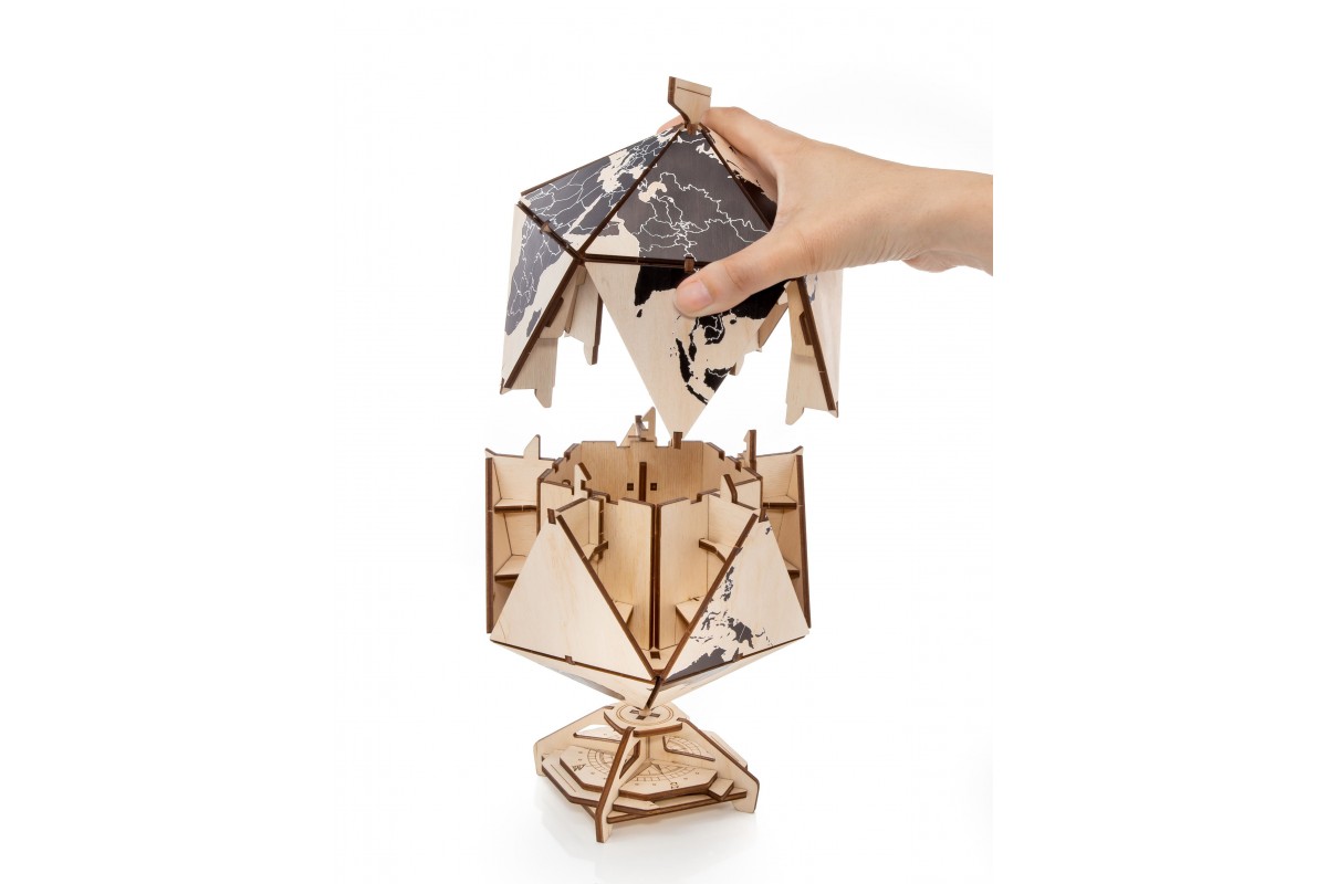 Конструктор деревянный 3D EWA Глобус Икосаэдр с секретом (шкатулка, сейф) красный