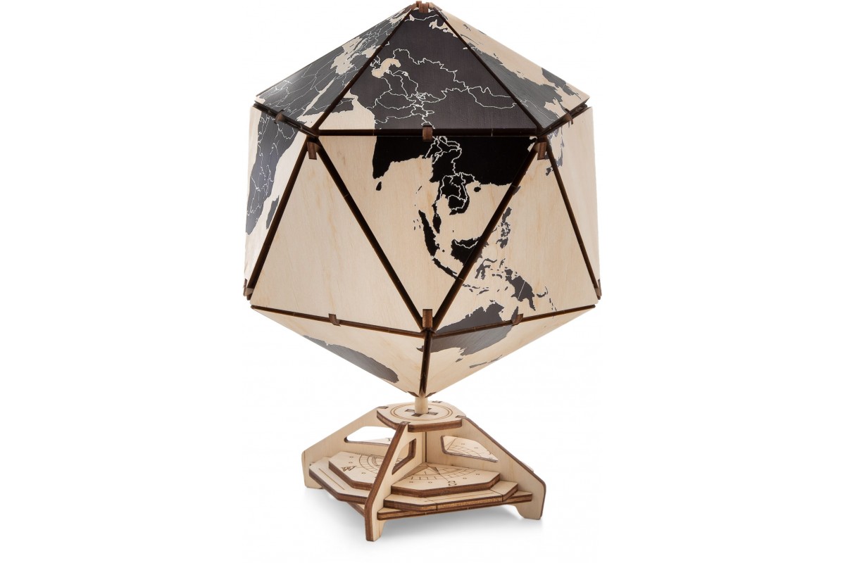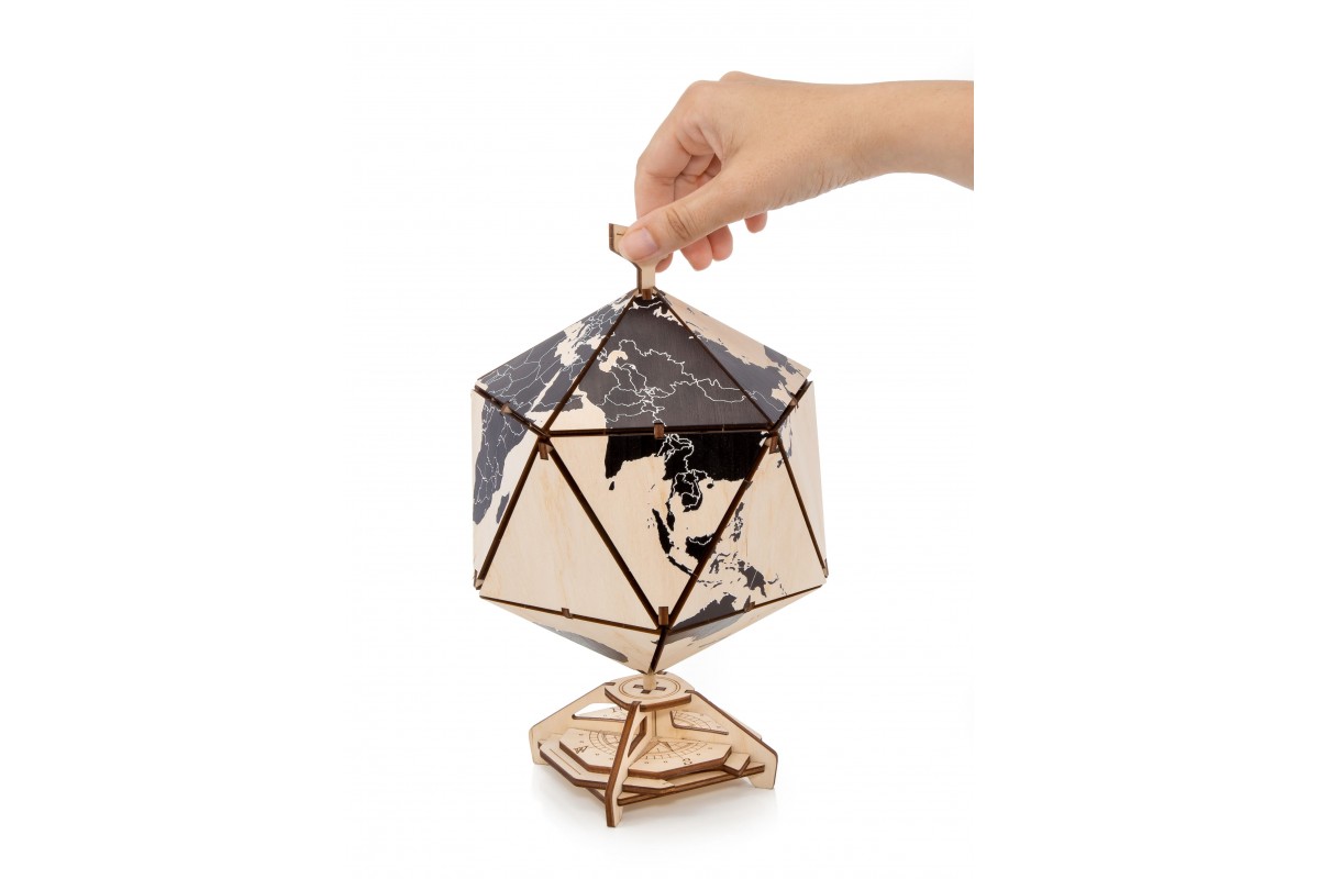Глобус икосаэдрической формы с секретным отделением внутри шара и секретным механическим запирающим механизмом.