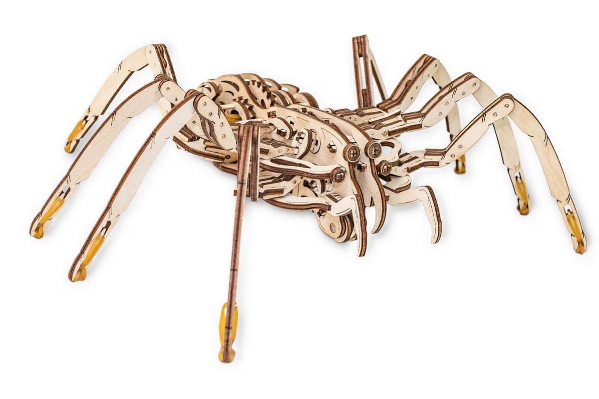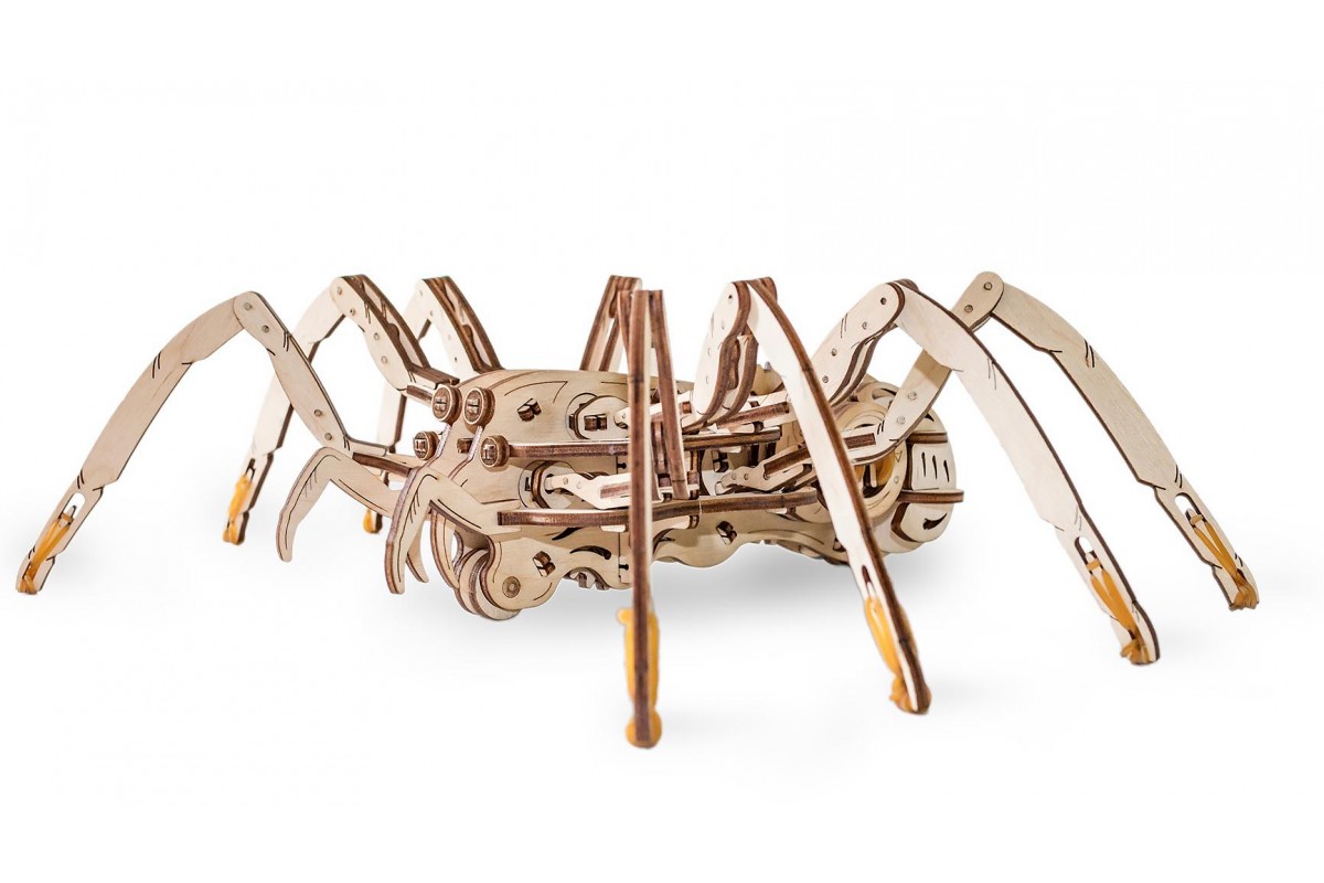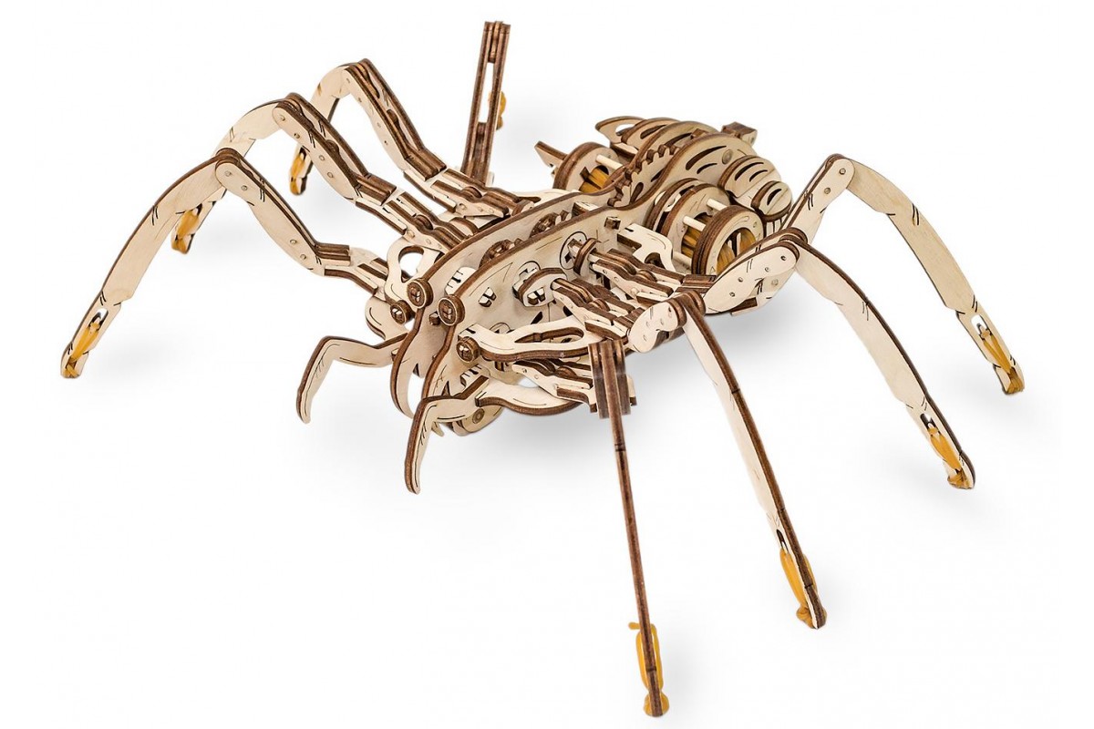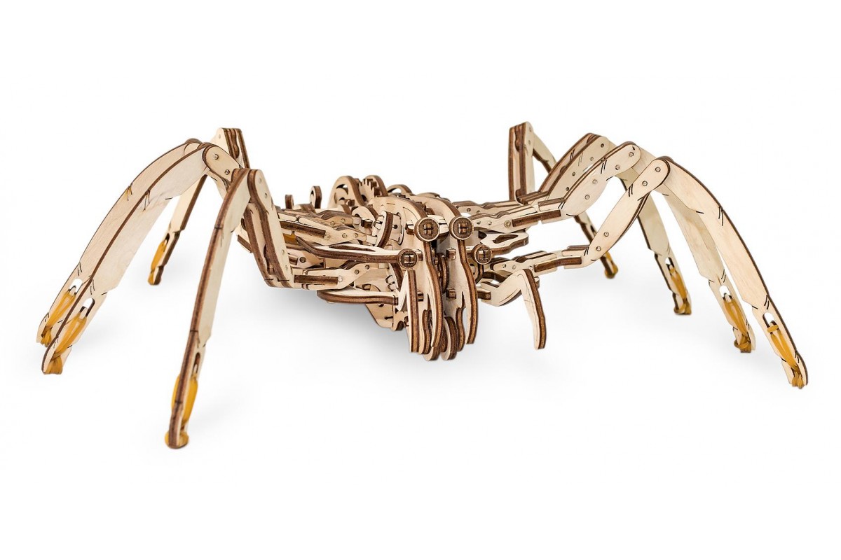 ПАУК — сборная механическая модель паука с простым механизмом ручной заводки. Эффектный дизайн, натуральные материалы, высокая схожесть с арахнидами, грациозность и стремительность в движении дают возможность испытать незабываемые ощущения от использования модели. Паук может стать отличным подарком или заметным элементом декора, предметом коллекционирования или поводом пошутить с друзьями!