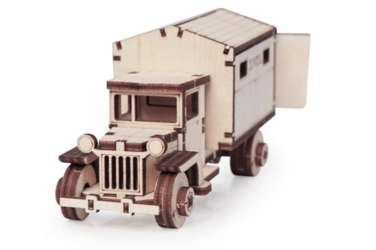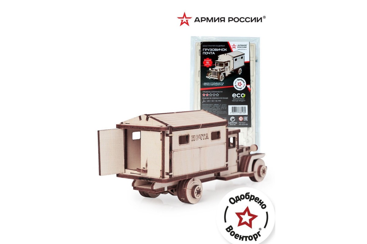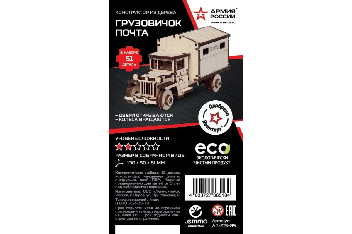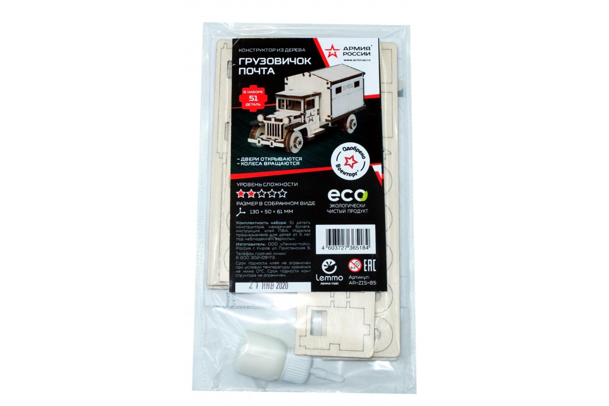 Набор Советский грузовик ЗИС-5 Почта подходит для ребенка от 5 лет. У собранной модели вращаются колеса.