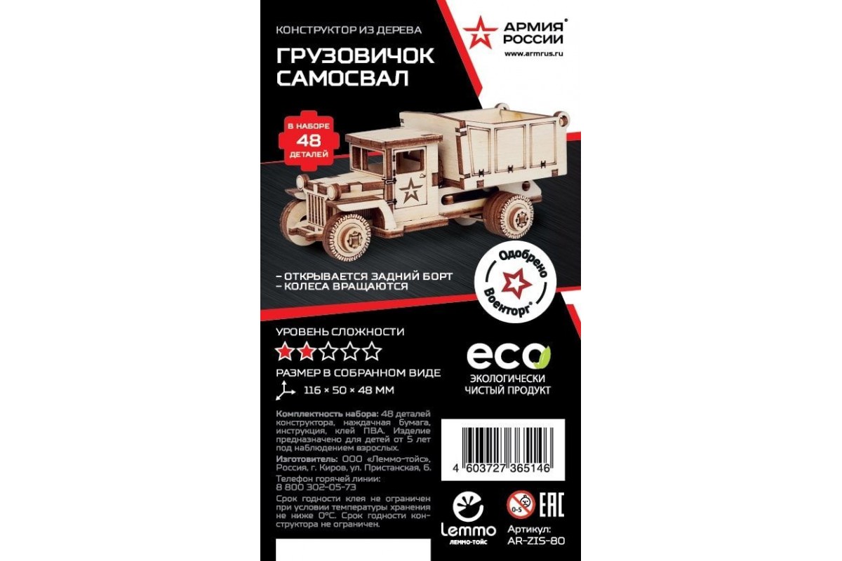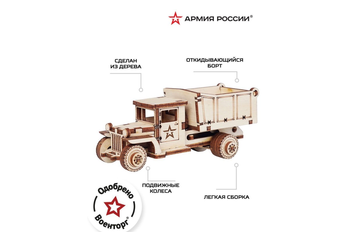 Набор Советский грузовик ЗИС-5ВБ с кузовом подходит для ребенка от 5 лет. У собранной модели вращаются колеса.