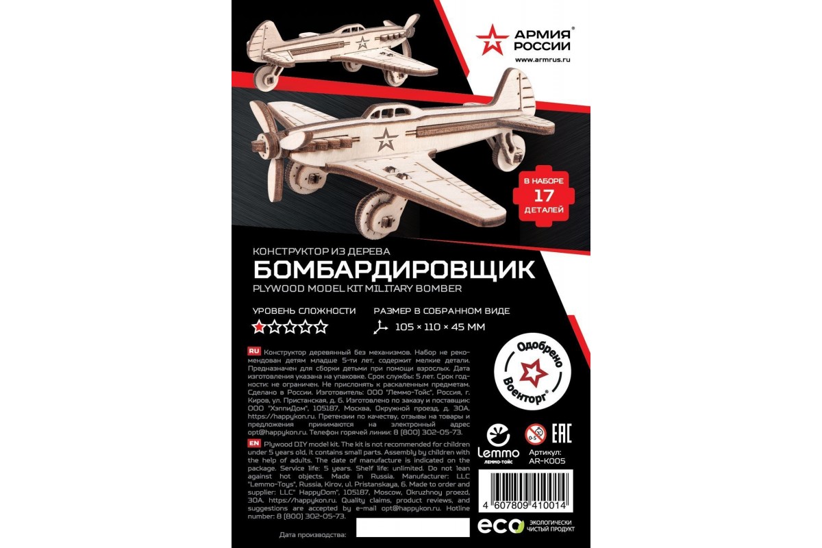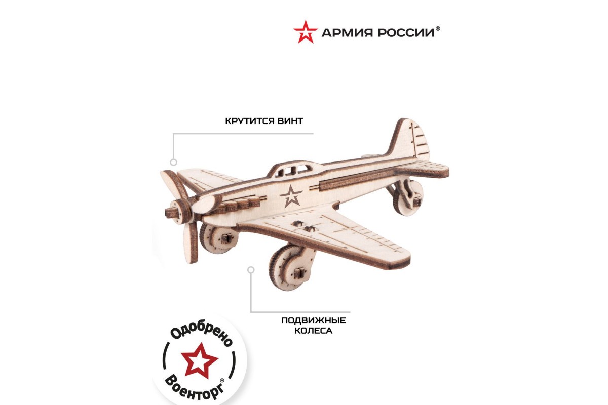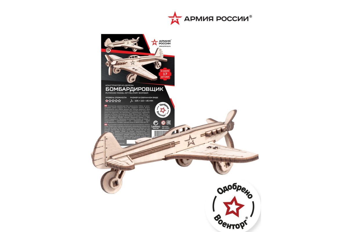 Бомбардировщик "Армия России" - это деревянный конструктор самолет времен Великой Отечественной Войны.