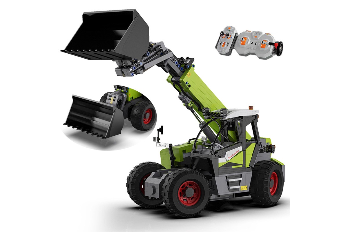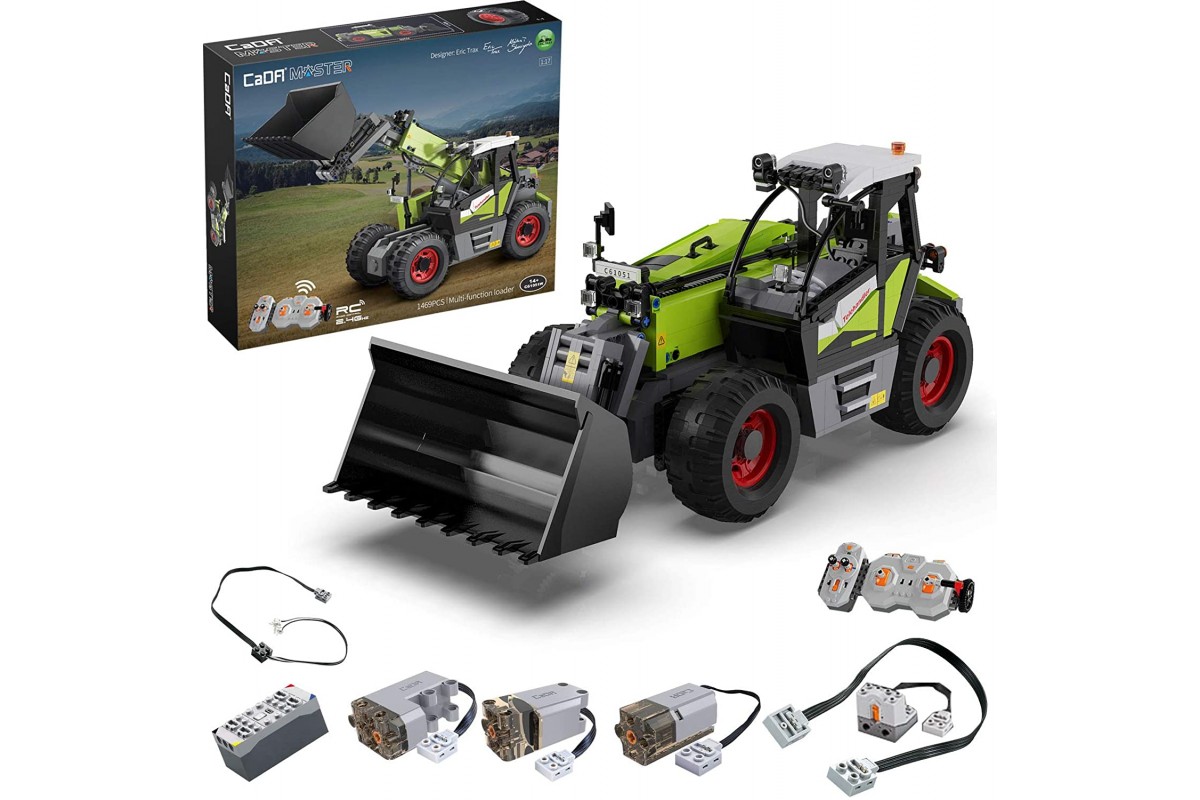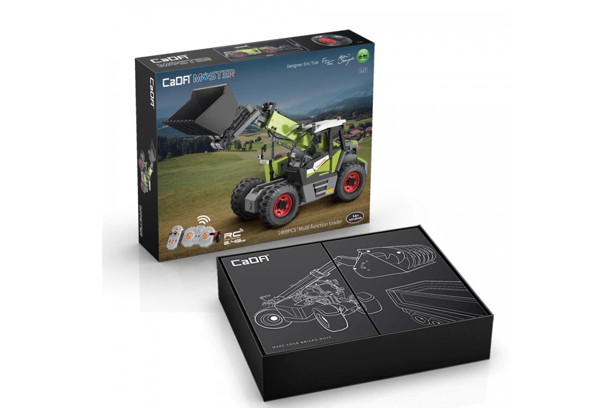 Конструктор Double E Cada Technics бульдозер-погрузчик (1469 деталей, пульт, электропривод) - C61051W - это радиоуправляемая точная копия погрузчика в масштабе 1:17, которая очень реалистична и упакована в дизайнерскую красочную коробку. Колеса с красными дисками оснащены большой противогрязевой резиной и как в оригинале, обе оси подруливают при движении. Электромоторы обеспечивают движение и поворот машины, подъем и выдвижение телескопической лапы и управляют работой ковша, который можно заменить на погрузочные вилы, а LED-элементы имитируют работу передних фар и задних стоп-сигналов.