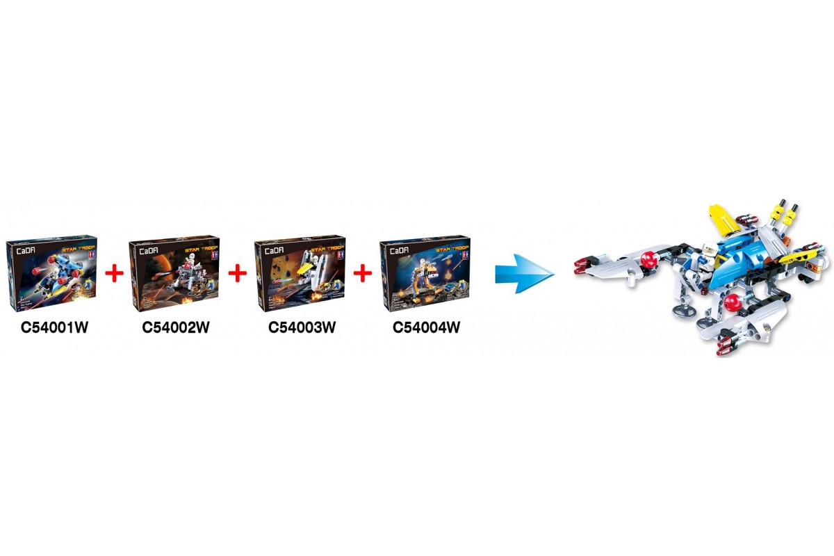 Модель этого космического аппарата относительно несложная. Но у вас есть возможность построить более сложную модель из целых четырёх наборов! Это конструкторы, входящие в серию «Космический десант» C54001W, C54002W, C54003W и C54004W.