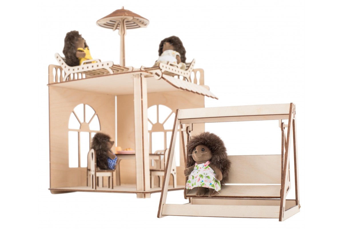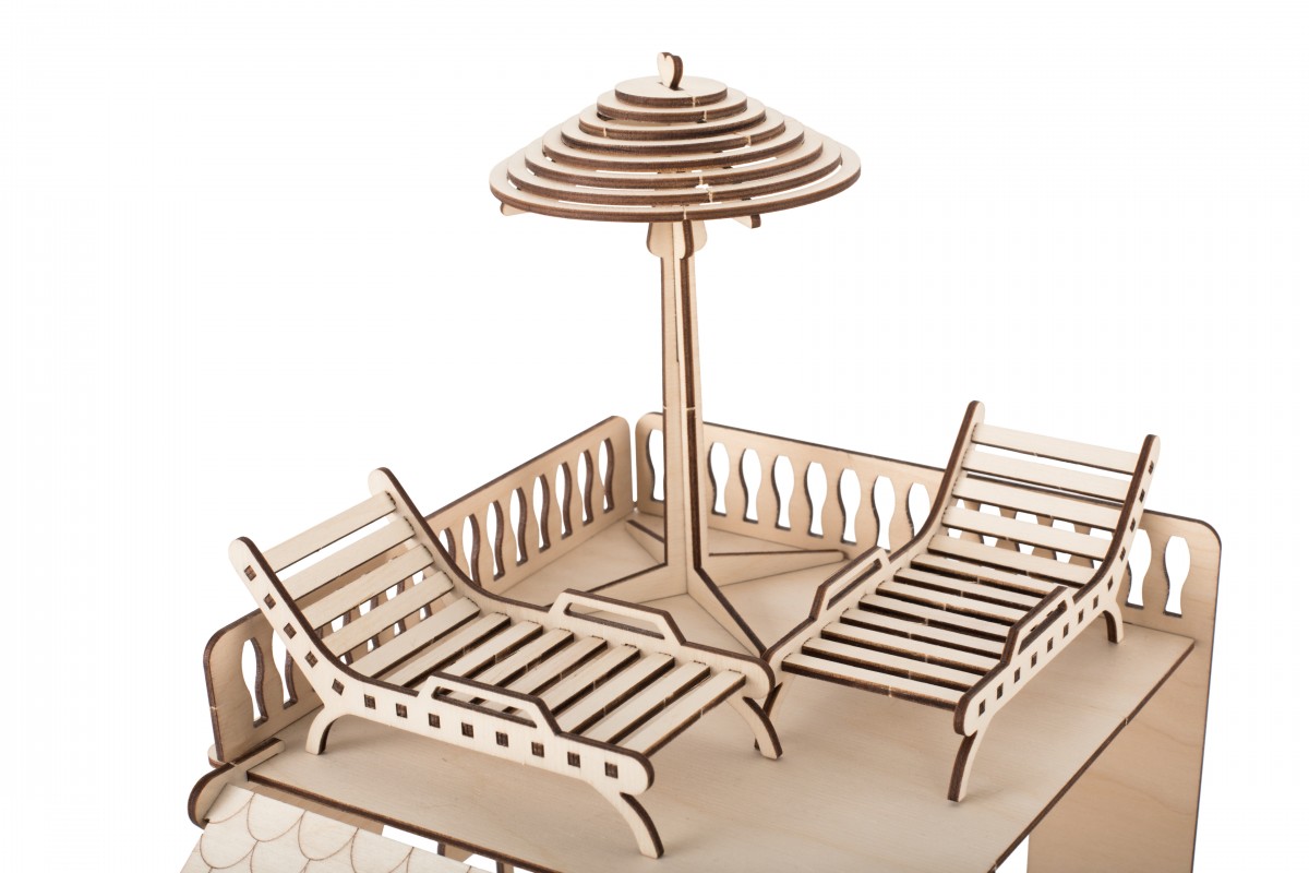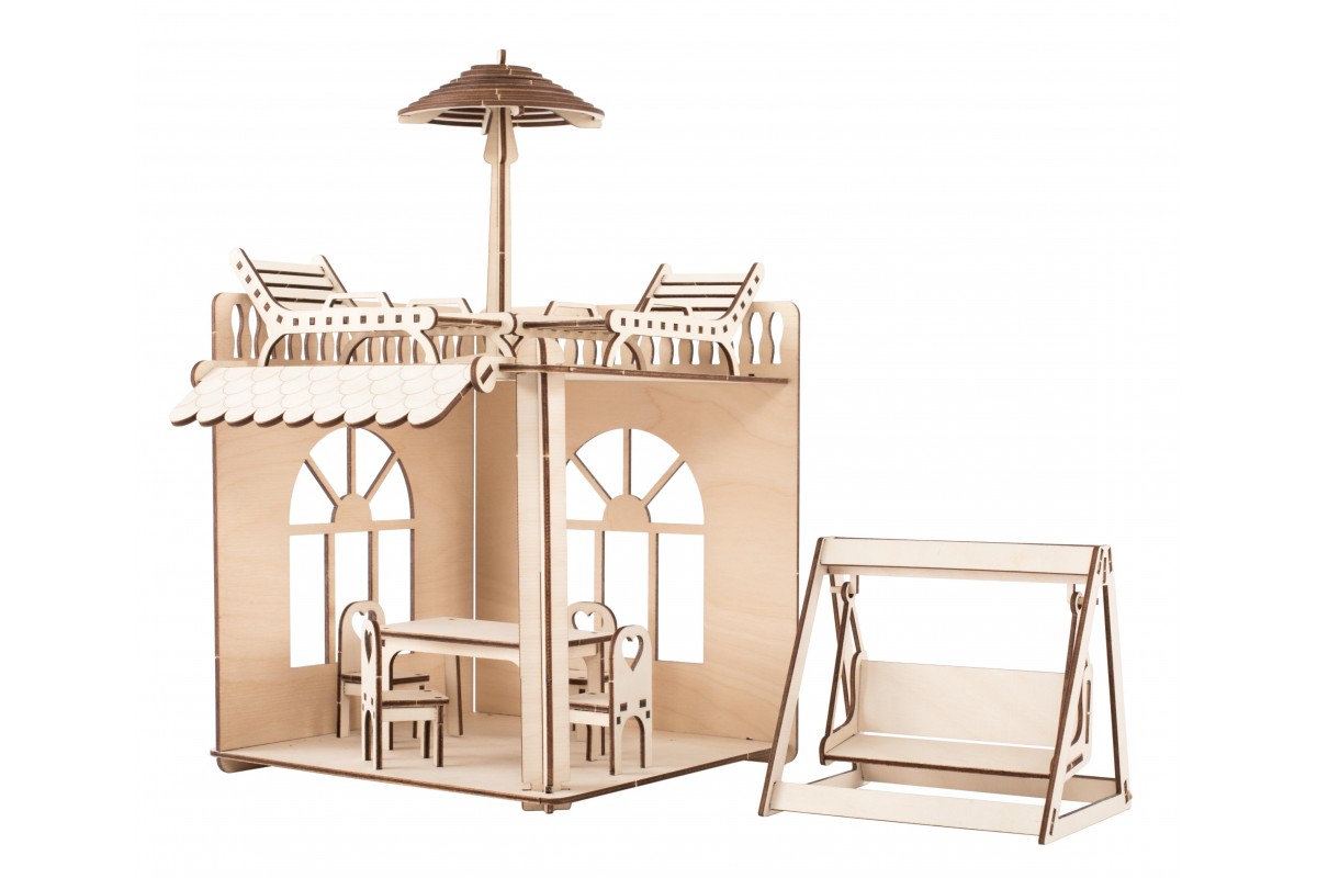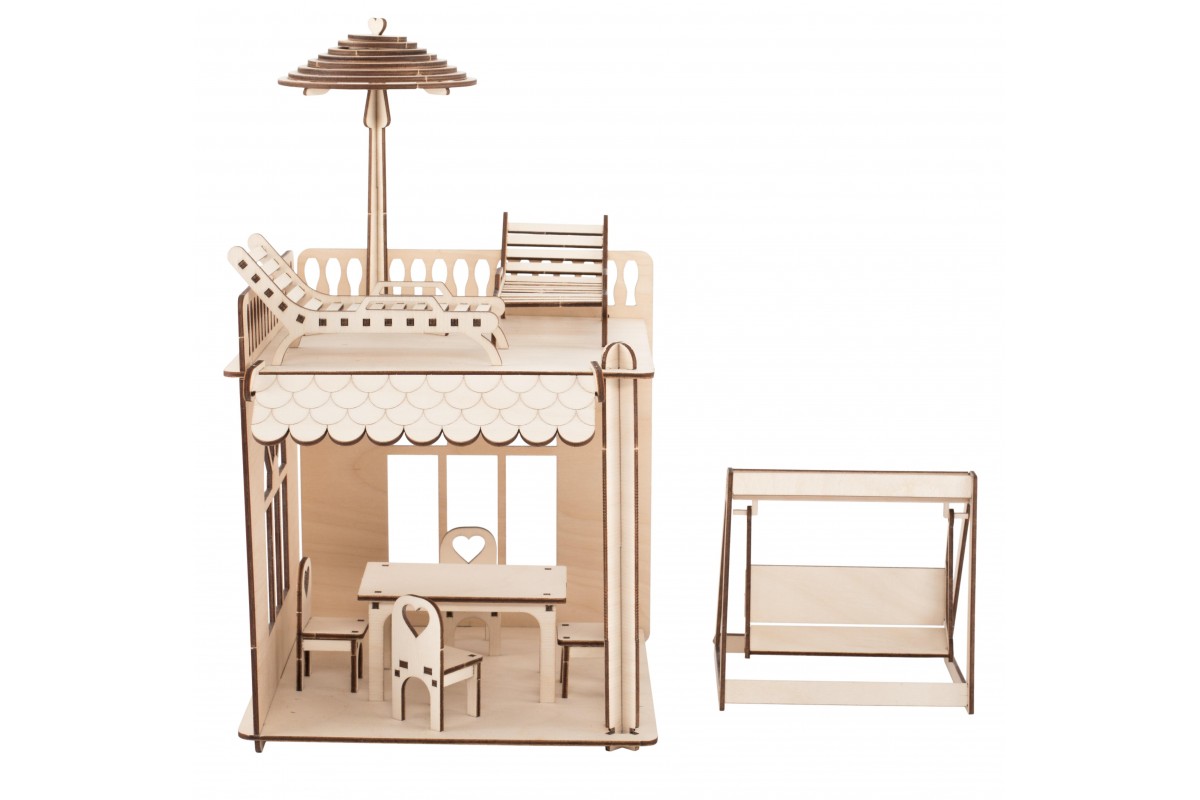В комплекте с пристройкой идут два шезлонга и зонтик. Ваши любимые герои и куколки смогут замечательно провести время.