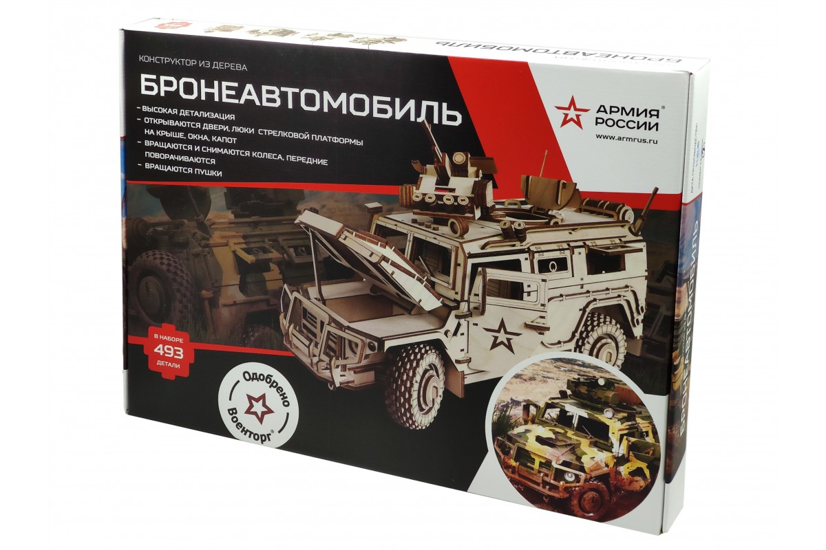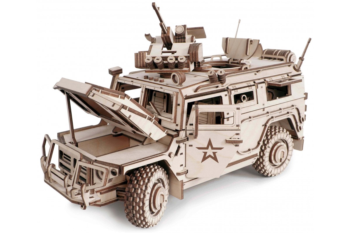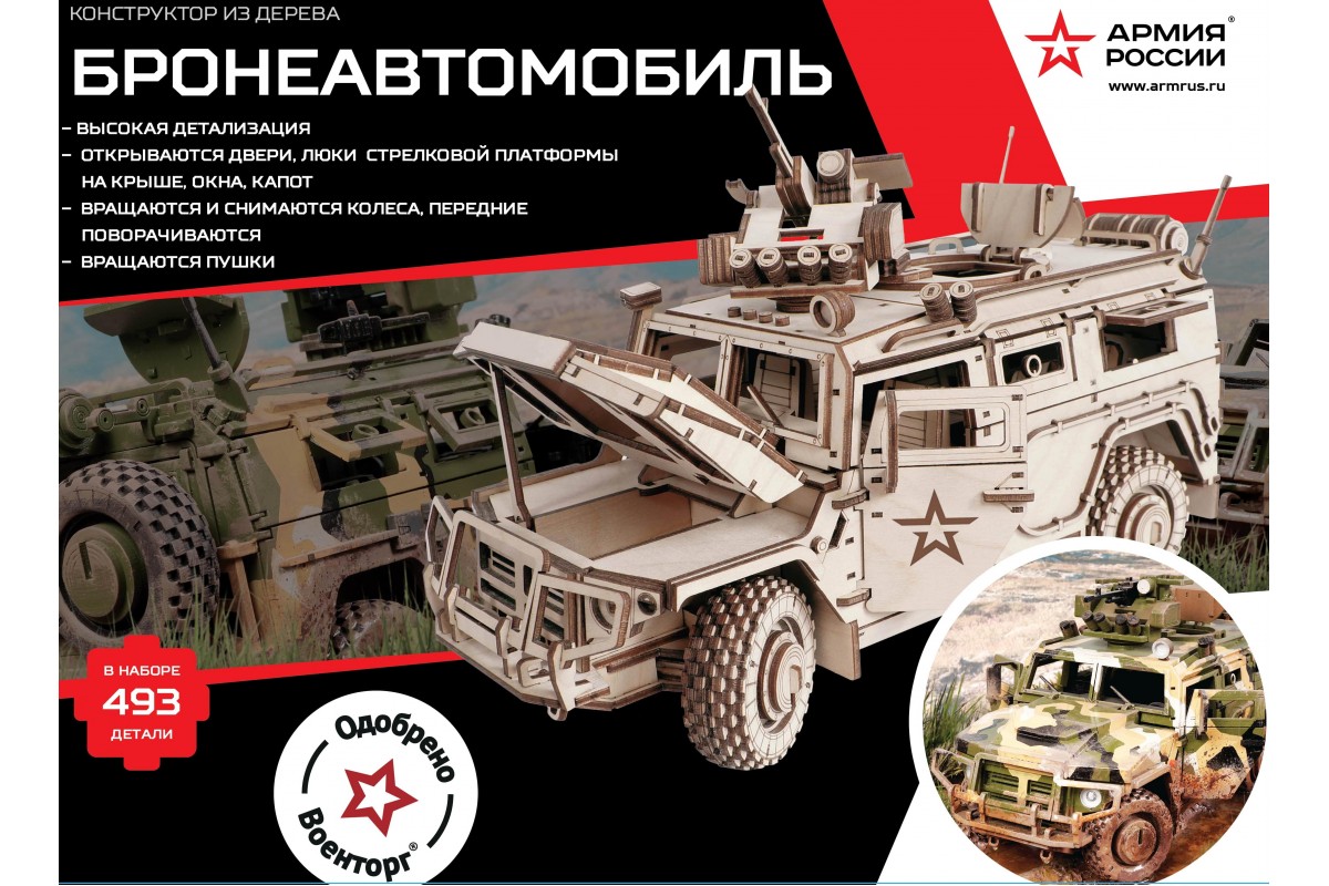 Конструктор из дерева "Бронеавтомобиль" смогут собирать как дети от 8 лет, так и увлекающиеся взрослые.