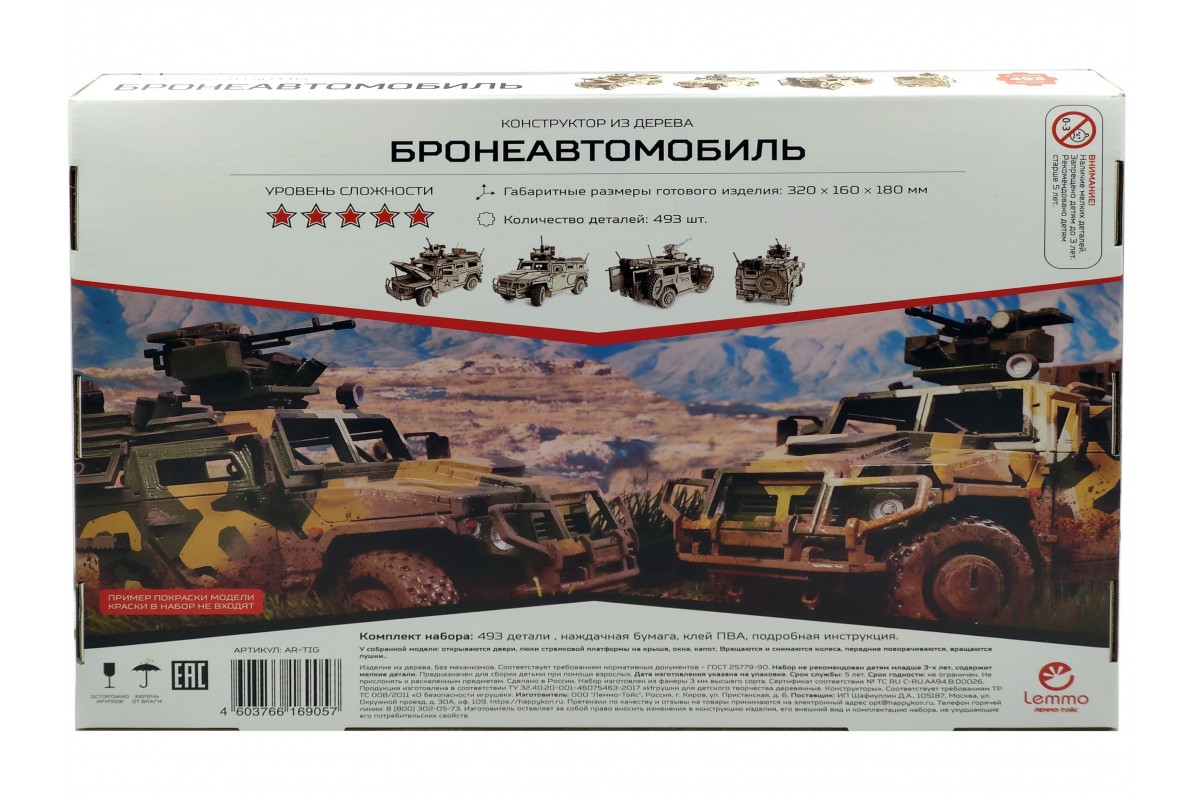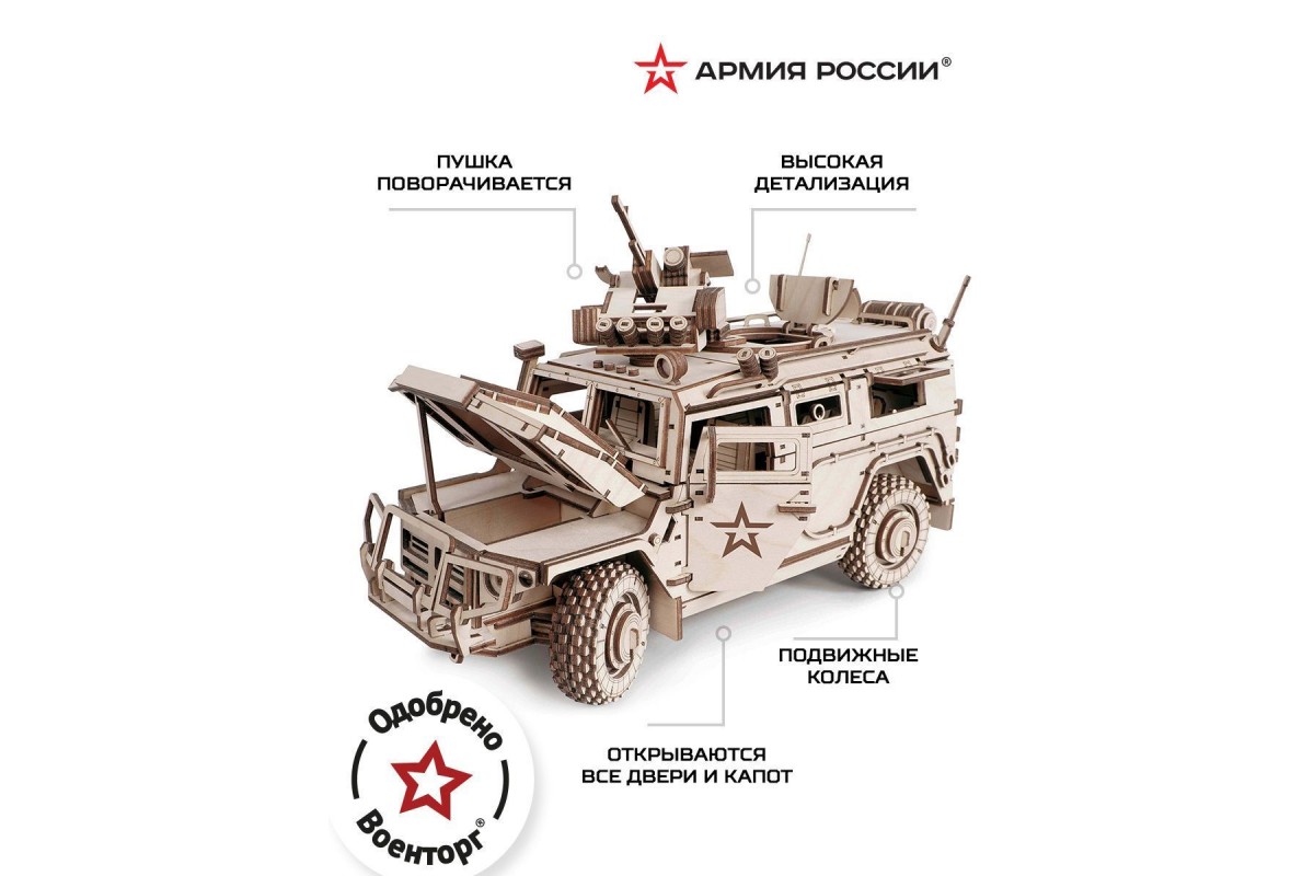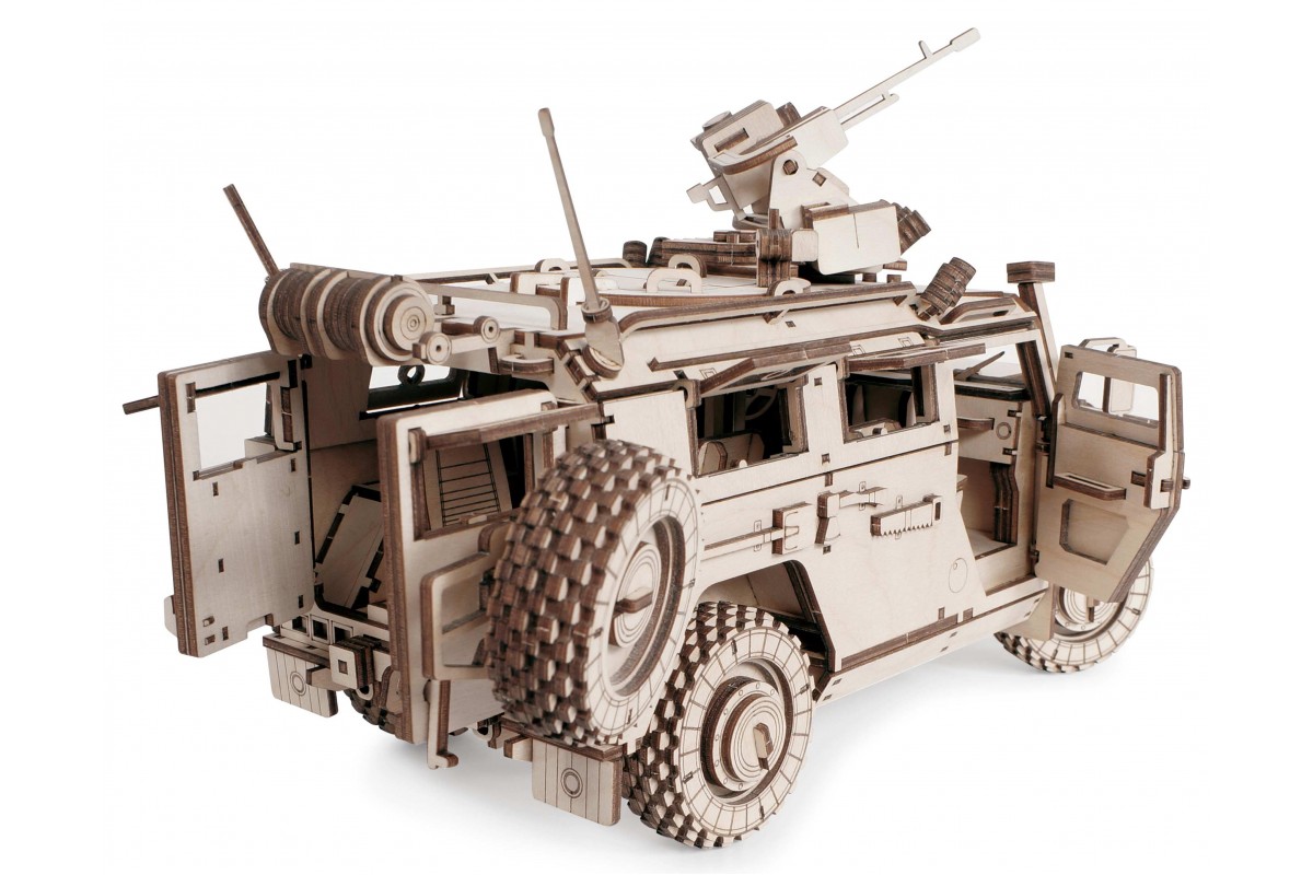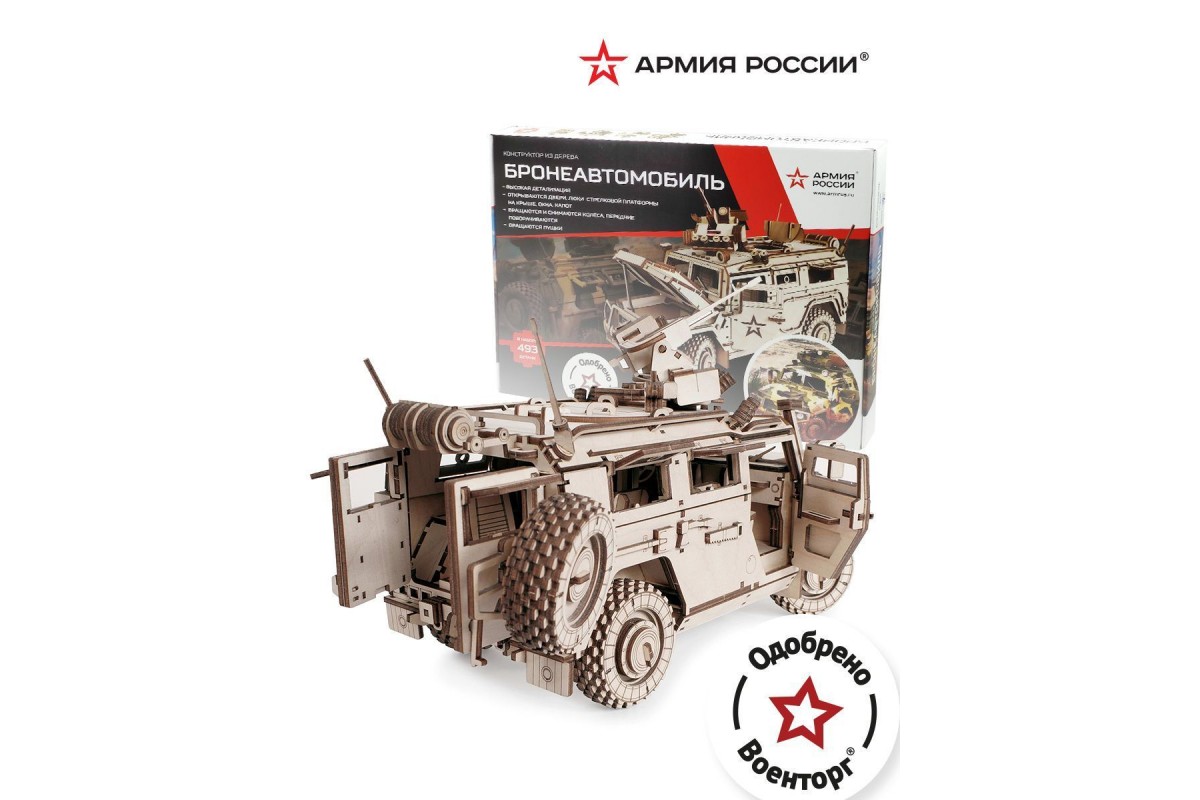 Конструктор из дерева "Бронеавтомобиль" смогут собирать как дети от 8 лет, так и увлекающиеся взрослые.
