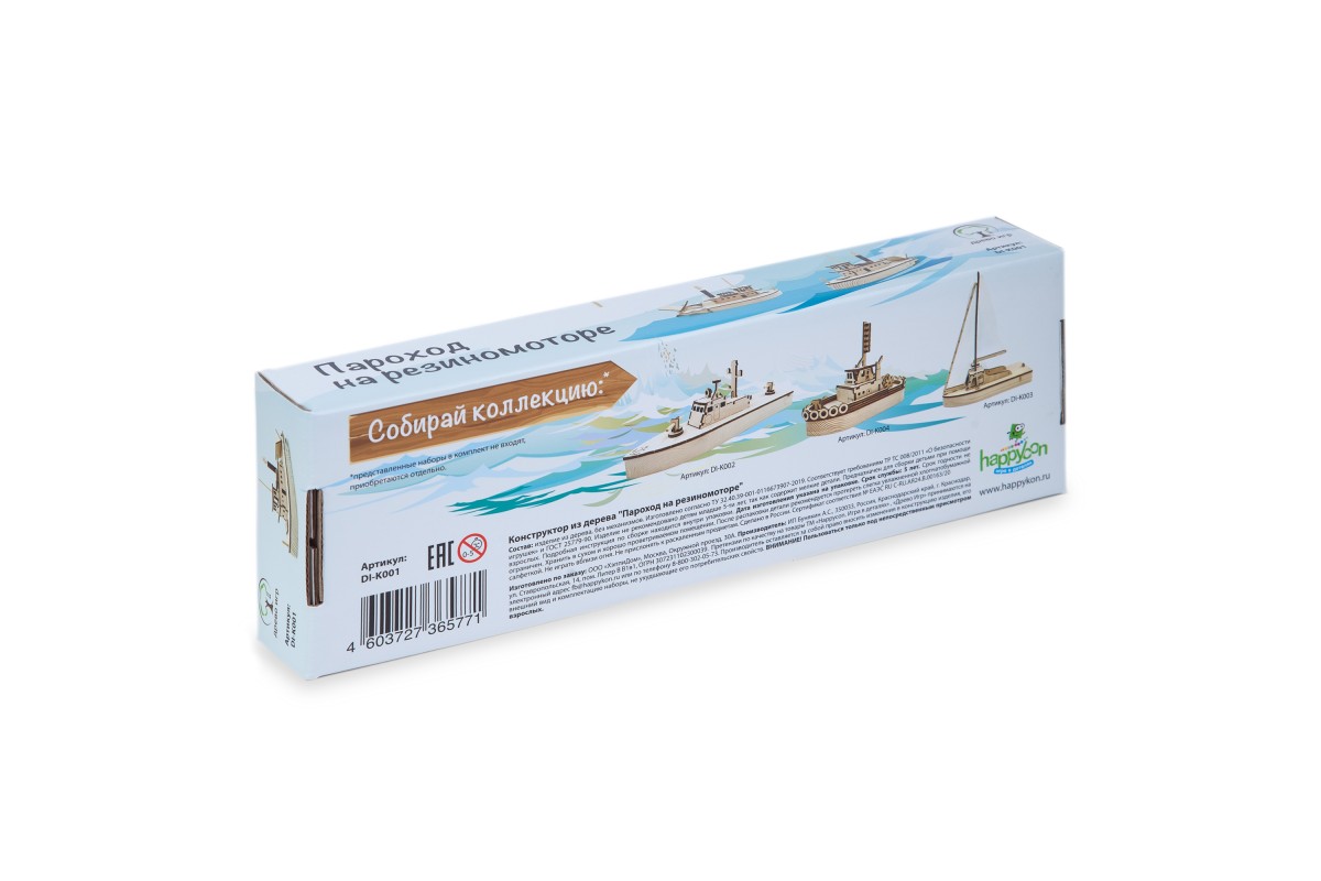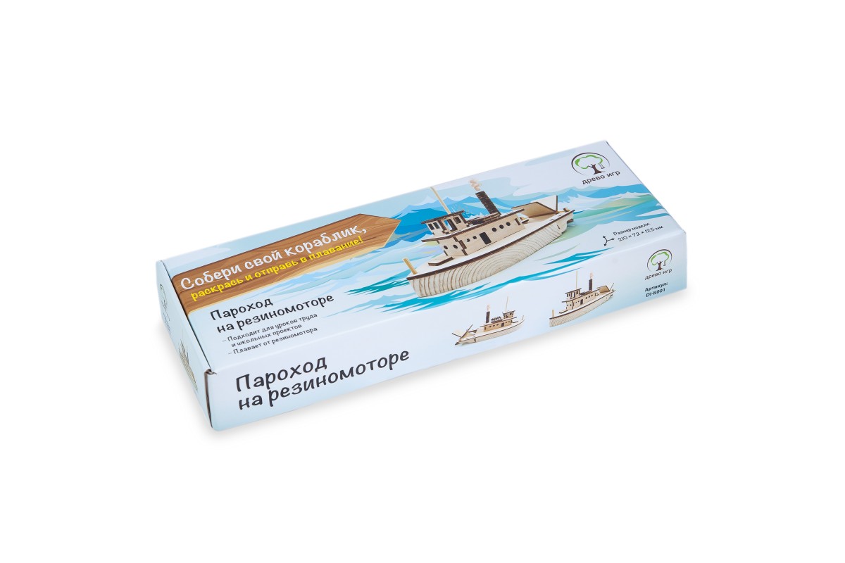 Собранный пароход можно пустить в плавание по воде. Если закрутить резиномотор и отпустить, то скорость плавания увеличивается.