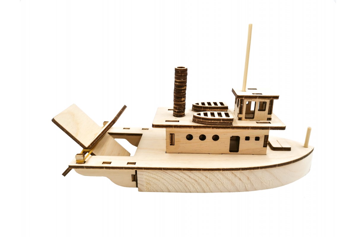 Набор для начального технического моделирования. Спроектирован таким образом что бы Ваш ребенок освоил начальные технические навыки по сборке простых моделей техники. Включает операции: склеивание деревянных и фанерных деталей, шлифование.