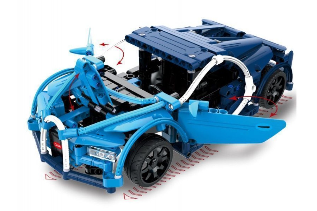 Детский конструктор CaDa Technic C51053W представляет собой набор для постройки красивого синего Bugatti на радиоуправлении и содержит 419 деталей! Помимо деталей корпуса, в комплект входят колеса, электродвигатель, плата управления, аккумулятор с зарядным устройством и пульт! Детали в наборе отлично подогнаны друг к другу, поэтому сборка не вызовет трудностей, а собранная машинка не развалится во время игры. У собранной модели открываются двери и капот.