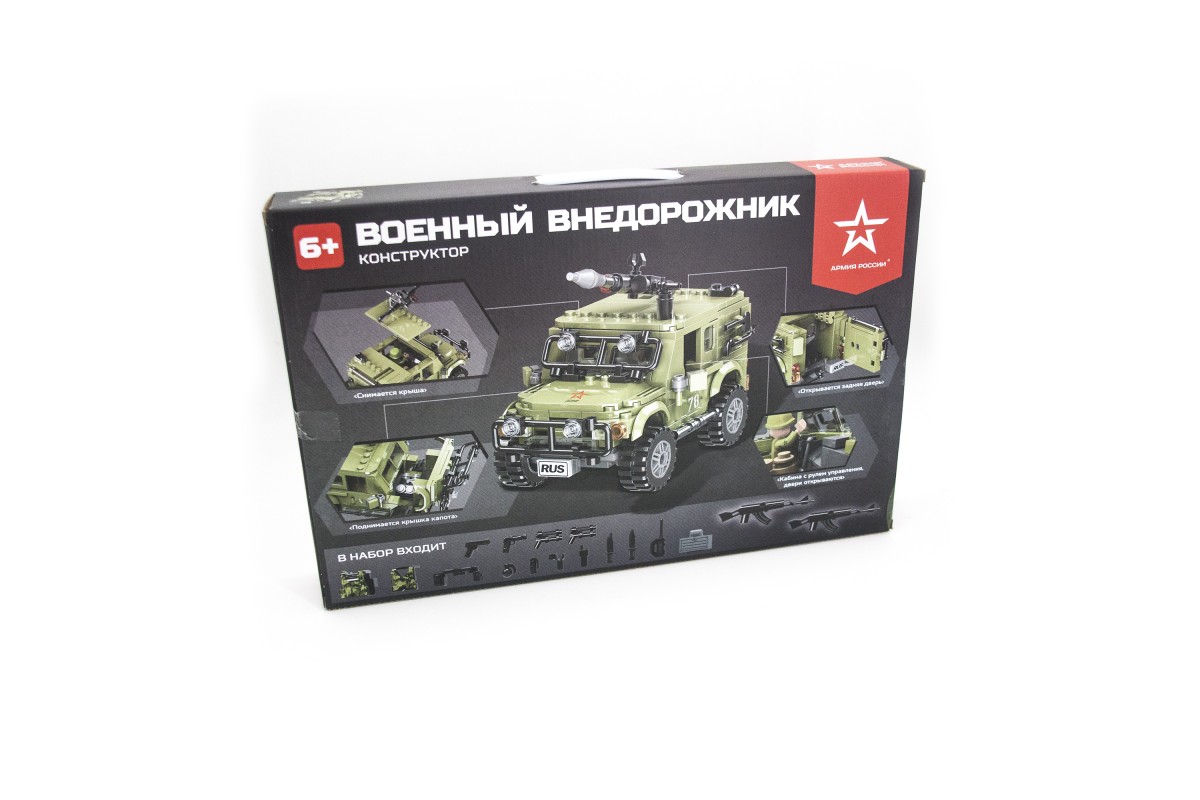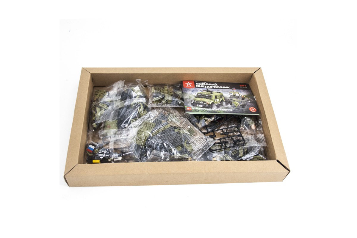 Конструктор "Военный Внедорожник" состоит из 497 деталей. Предназначен для детей старше 6-лет.