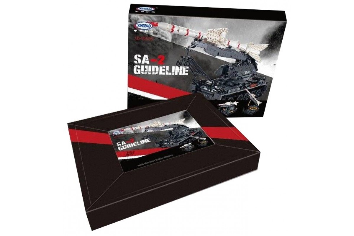 В вооружённых силах любой страны огромное внимание уделяется системам защиты от воздушных нападений на объекты, технику и личный состав. Именно это стало подвижкой для создания современных зенитных ракетных комплексов. В 50-е годы военные поняли, что бороться с реактивными самолётами традиционными зенитками невозможно. Противостоять им можно только такой же сверхскоростной системой противовоздушной обороны. Одной из успешных проектов в этом отношении стало советское изобретение под кодовым определением натовских экспертов SA-2. Что она собой представляет, становится понятно, когда из деталей набора 06003 XingBao Ракетная установка SA-2 (SA 2 Guideline)будет собрана точная копия гусеничного ракетного комплекса.